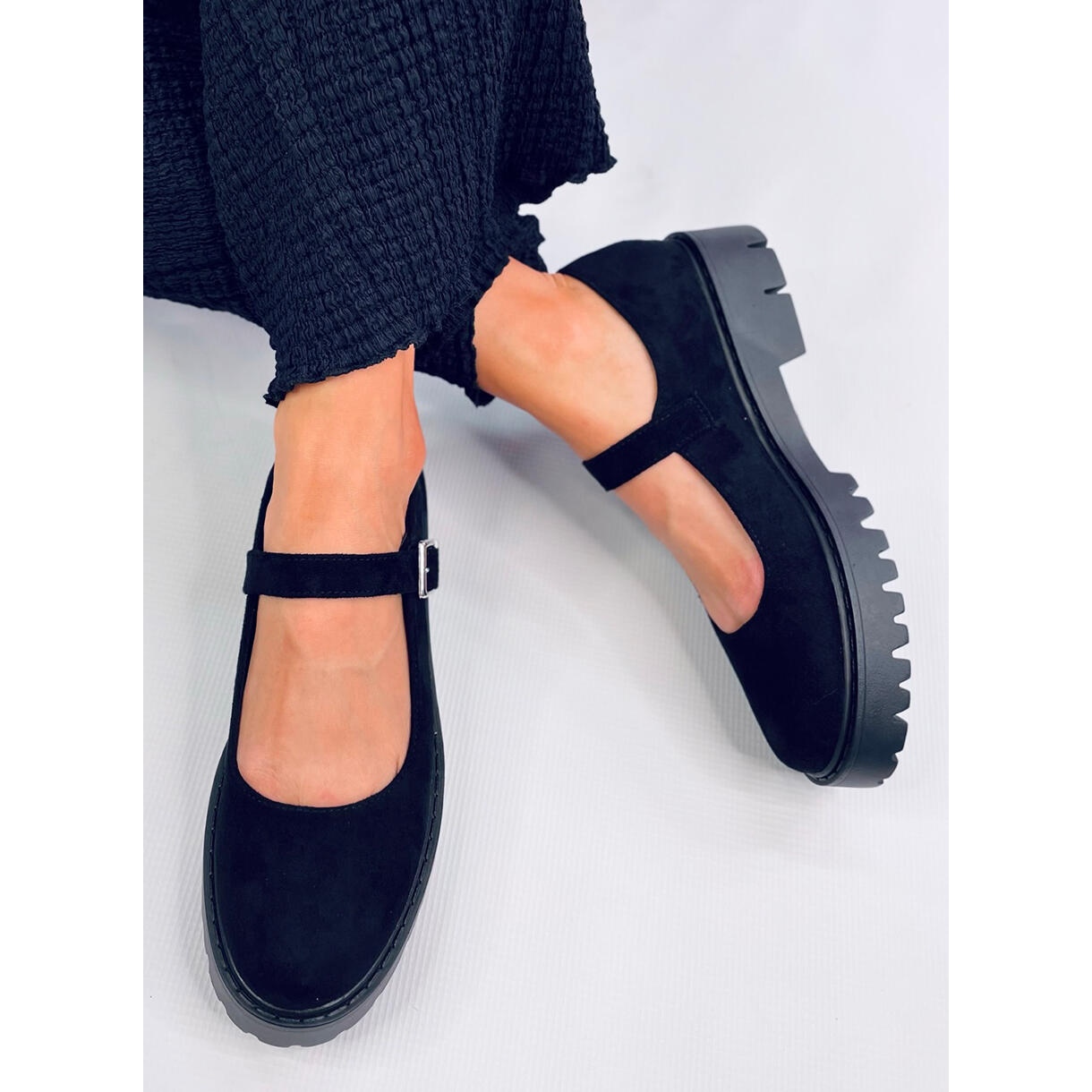 Découvrez l'élégance et la commodité avec des ballerines sur la plate-forme Black Holmess! Ces ballerines noires élégantes sont en daim écologique de haute qualité, ce qui les donne luxueuses et en même temps respectueuses de l'environnement. Leur nez minimaliste, le nez rond et un trappeur, la semelle haute leur donnent du caractère et de la modernité.