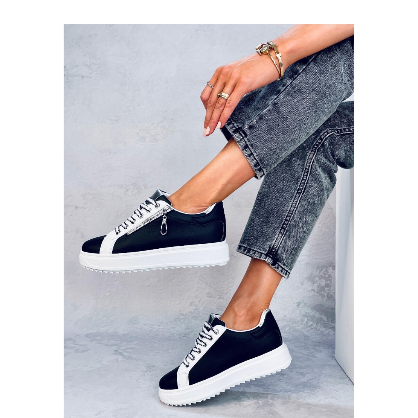 Baskets à plateforme pour femmes. Appréciez-vous les solutions à la mode ? Assurez-vous de choisir ce modèle aux gaufrages impressionnants ! La semelle haute blanche qui domine cette saison est le point culminant élégant de l'ensemble du design, et ajoute également quelques centimètres :) Peu importe ce que vous portez, ces chaussures joueront toujours le rôle principal ! Ils sont fabriqués en cuir écologique et l'intérieur est doublé de tissu.