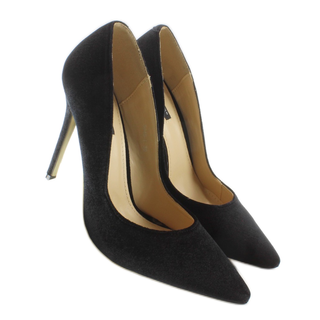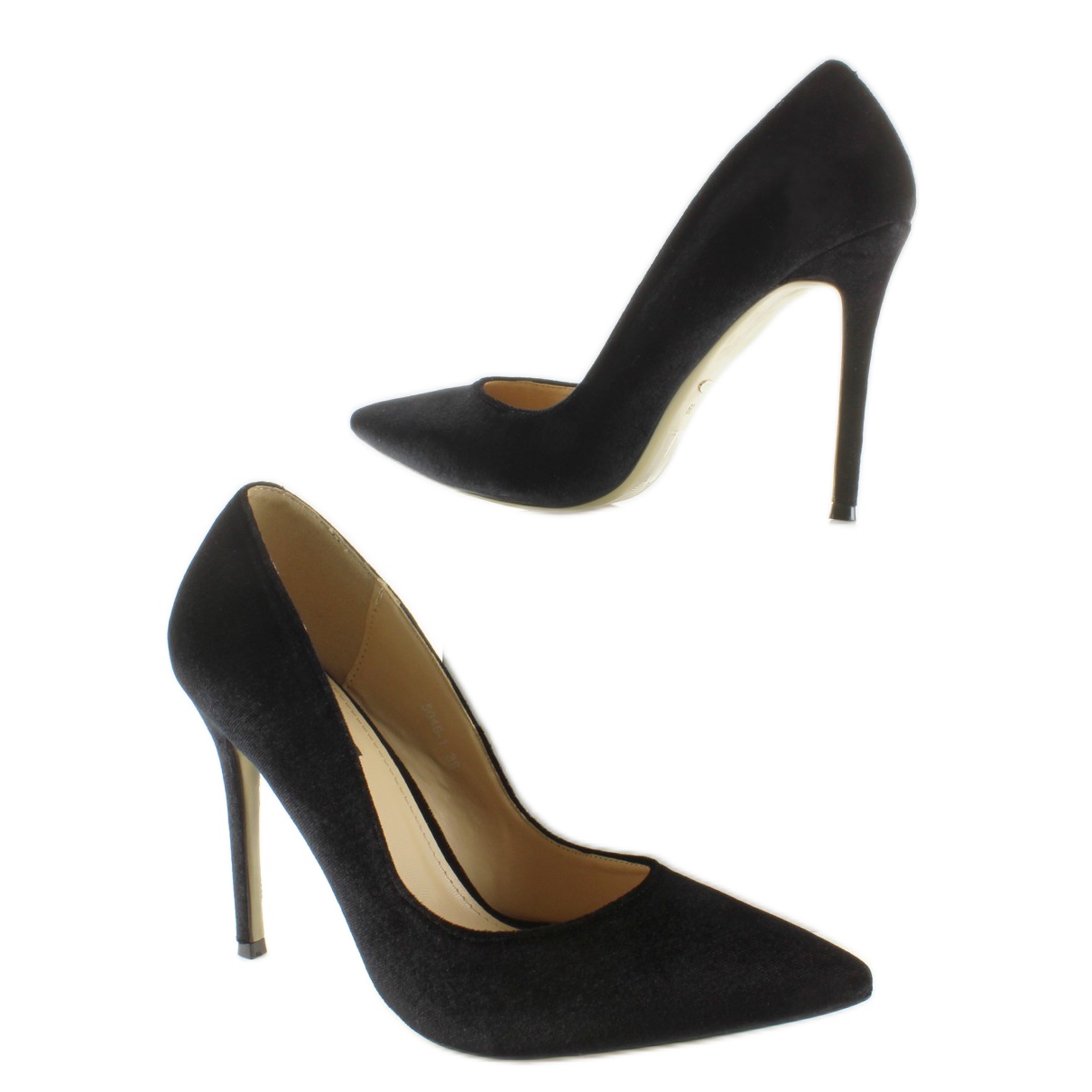 Ce sont d'étonnants talons aiguilles en velours d'une élégante couleur noire qui attireront certainement l'attention lors de n'importe quelle fête. Ces escarpins à talons hauts uniques sont le choix parfait pour les grandes occasions, alliant style classique et moderne. Le talon haut et fin, de 10,2 cm de haut, met parfaitement en valeur les formes des femmes, et leur forme les rend belles sur la jambe.