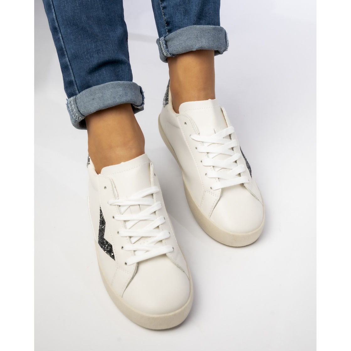 Les baskets pour femmes avec des inserts paillettes noires sont le choix parfait pour les femmes qui veulent combiner le confort avec un look à la mode. Ces chaussures fonctionnelles, en cuir écologique de haute qualité, offrent non seulement une durabilité, mais aussi le confort de porter toute la journée.