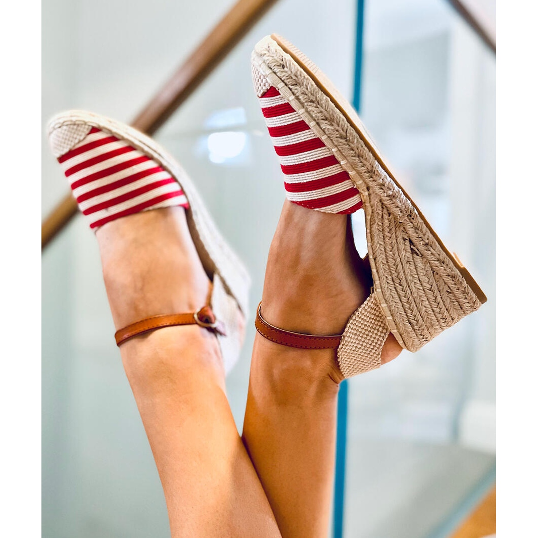 Découvrez l'élégance et le confort inégalés qu'offrent les espadrilles rayées Irma Rouge ! Ces chaussures compensées uniques pour femmes de 7 cm de hauteur, fabriquées en tissu de haute qualité et en cuir écologique, sont le choix parfait pour les journées d'été. Le motif rayé classique dans les tons de beige et de rouge en fait un complément parfait à tout style, ajoutant légèreté et fraîcheur.