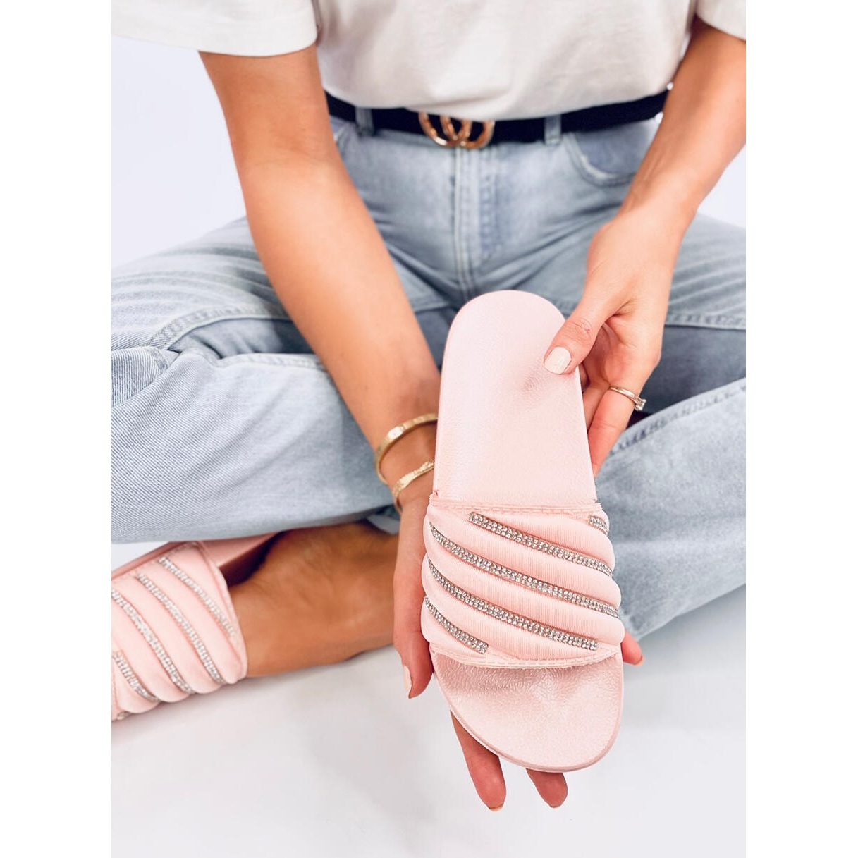 Nous présentons les pantoufles de femmes roses Jaime dans une nuance unique de rose, qui se réjouit non seulement de la couleur, mais aussi de leur finition élégante. Ces tongs à la mode sur une semelle en caoutchouc se distinguent par une application brillante décorée de zircons délicats, ce qui en fait un choix parfait pour les jours d'été.