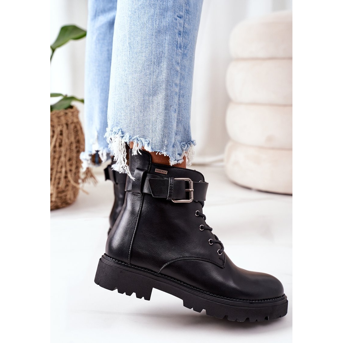 Avec une hauteur de tige de 14,5 cm et un talon plat de 3 cm, ces bottines assurent stabilité et confort au porté. La semelle synthétique garantit la durabilité et la semelle intérieure isolée augmente en outre le confort d'utilisation. Les fermetures sous forme de fermeture éclair, de boucle et de laçage permettent un enfilage et un réglage faciles des chaussures.