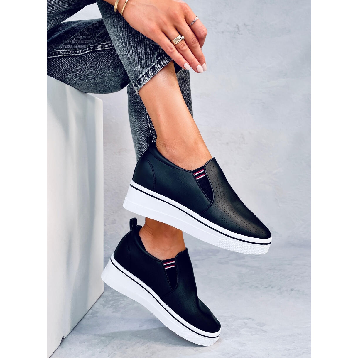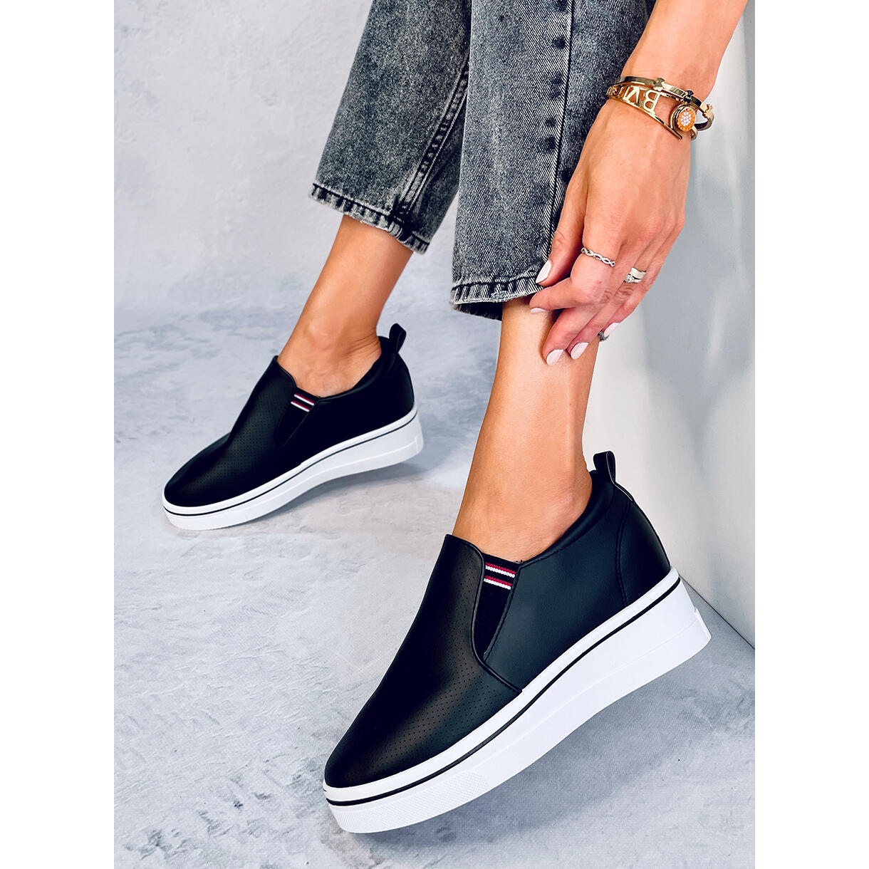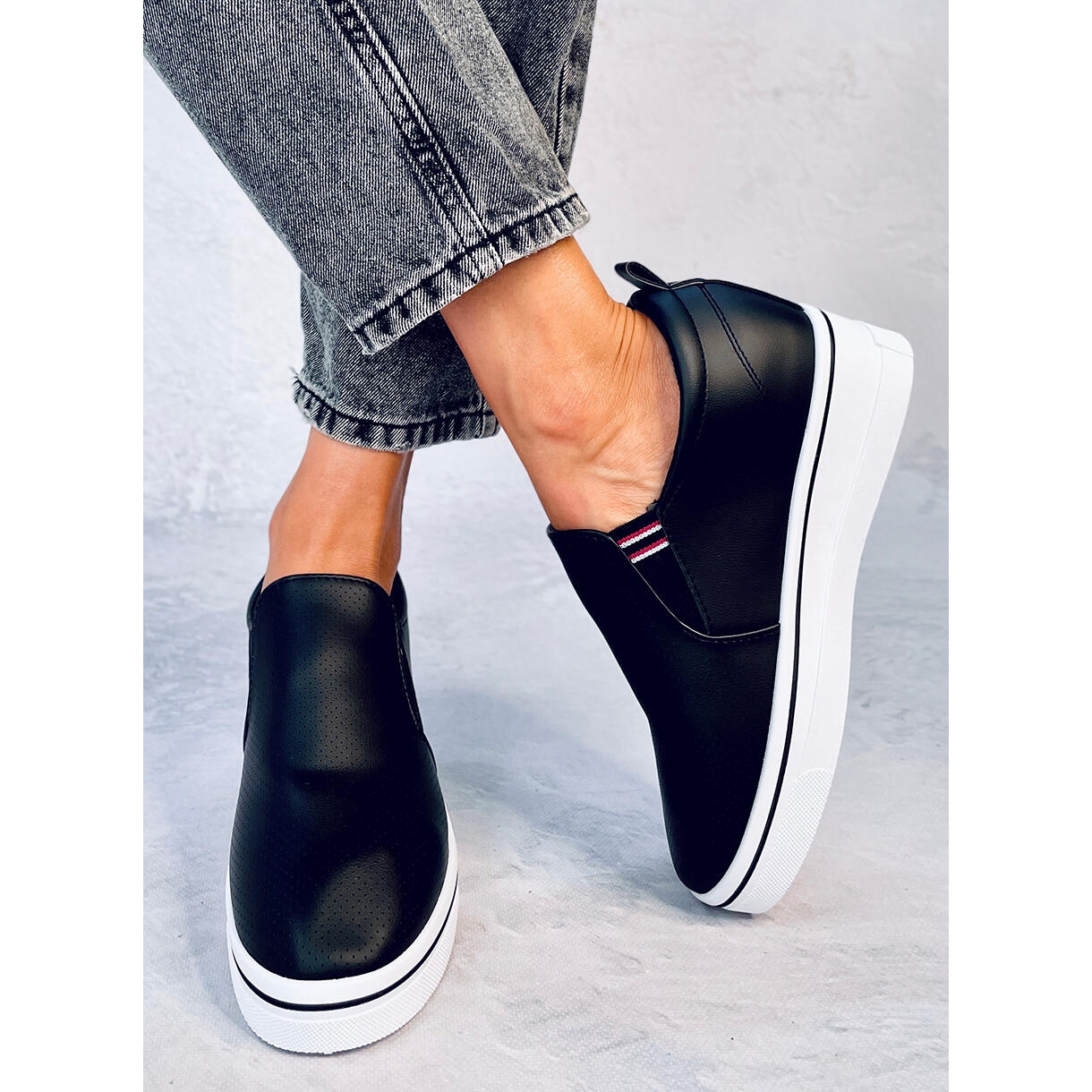 Les baskets sont faciles à acheter grâce à la fermeture à enfiler pratique, qui permet de les enfiler et de les enlever rapidement et facilement. Ils ont été conçus en pensant au style de vie d'une femme moderne qui ne veut pas renoncer à une apparence à la mode pour le confort.