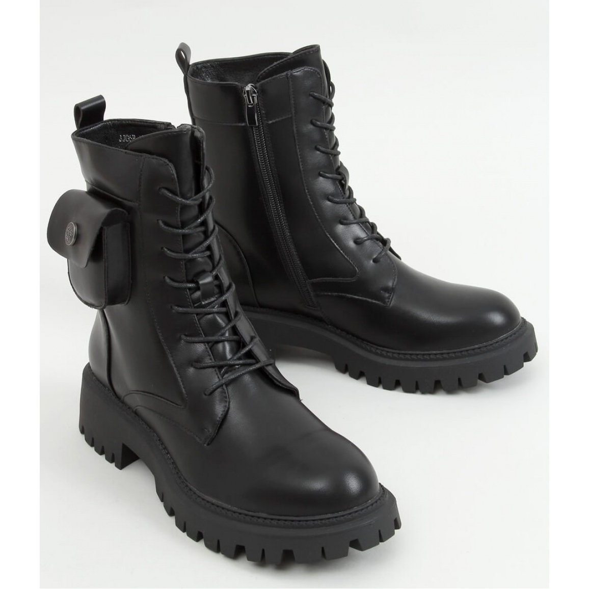 Des bottines pour femmes ? travailleurs avec une poche. Ils s'inscrivent parfaitement dans la tendance : il faut que ce soit tendance et confortable ! Classiquement lacées, elles s'ajustent parfaitement à la largeur du pied, mais elles disposent également d'une fermeture zippée sur le côté de la tige. Les chaussures de couleur noire universelle sont toujours un excellent choix ! Ils sont fabriqués en cuir écologique et doublés de fourrure délicate à l'intérieur.