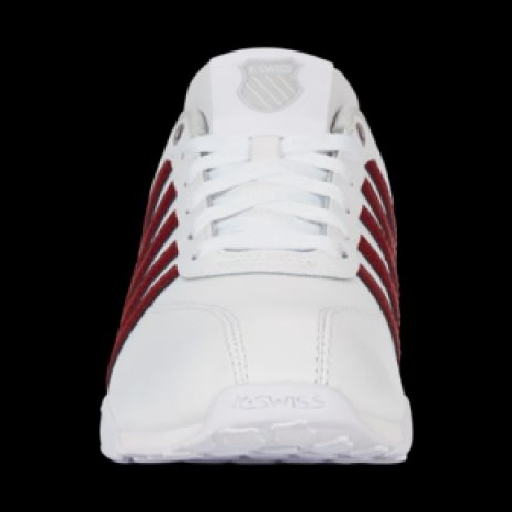 - Design classique: les rayures K-Swiss caractéristiques et le logo subtil ajoutent un caractère unique aux chaussures, soulignant leur sport et leur style élégant.