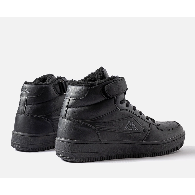 Les chaussures noires isolées pour hommes de Kappa, modèle 242799 Bash, sont des chaussures élégantes et pratiques pour l'automne et l'hiver. Il s'agit de chaussures de type sneaker d'une hauteur de 14 cm, qui sont en outre équipées d'une plateforme surélevée d'une hauteur de 3,5 cm. Ces chaussures hautes ont une numérotation standard et des bouts ronds, ce qui améliore le confort de port.