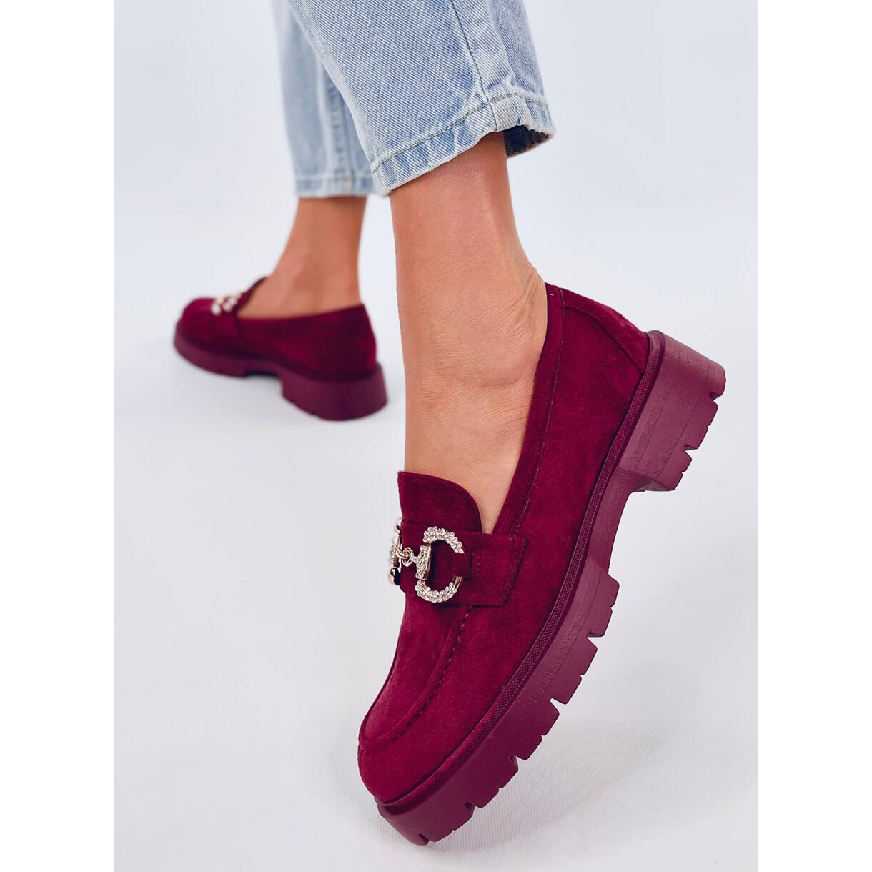 Sentez-vous élégante et confortable avec ces mocassins en daim rouge avec boucle - parfaits pour une femme qui valorise la combinaison de l'élégance et du confort ! Ces mocassins pour femmes, fabriqués en daim écologique de haute qualité, sont un choix parfait pour tout amateur de solutions de mode classiques mais aussi expressives.