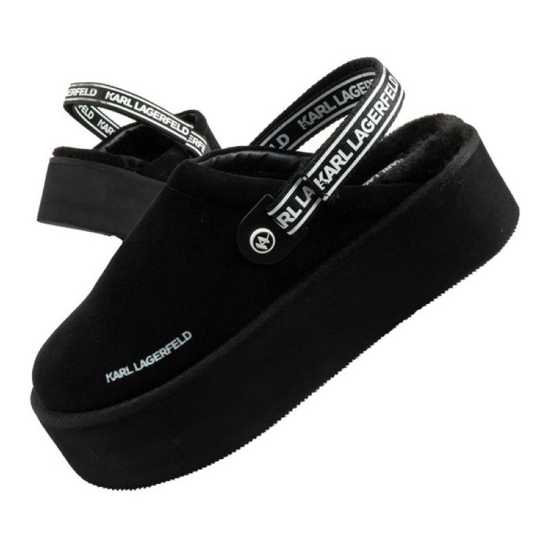 La fixation pratique sur la sangle flexible à l'arrière avec le logo Karl Lagerfeld vous permet de porter des volets à la fois aussi glissés que les talons, ce qui les rend extrêmement universels. Fabriquées en matériaux synthétiques, ces tongs sont chauds et confortables, ce qui les rend excellentes les jours d'automne et d'hiver plus froids.