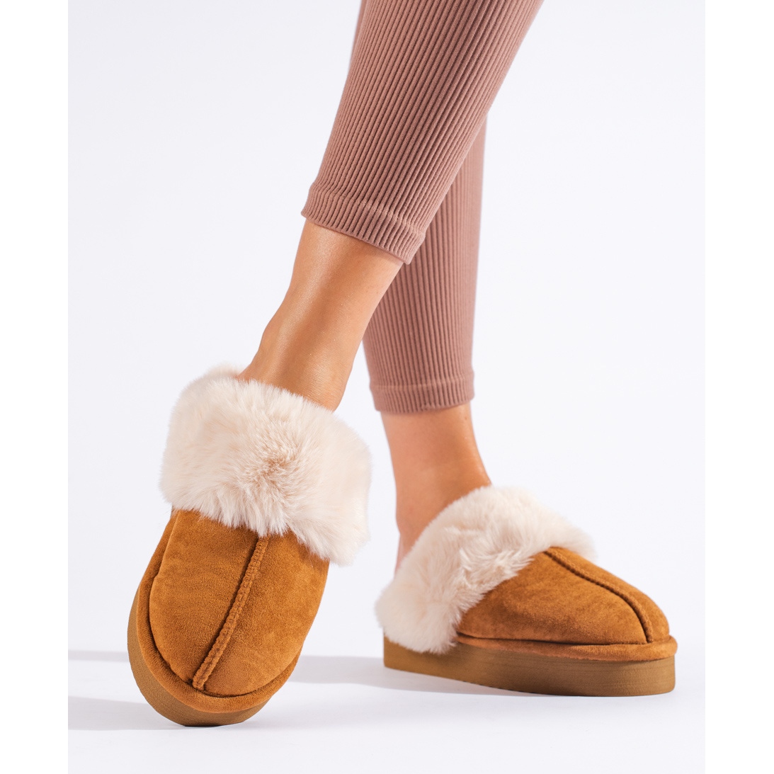Investissez dans le confort et le style de la maison avec les pantoufles douces et moelleuses SHELOVET sur la plateforme marron camel – découvrez la sensation de chaleur de la maison habillée d'un accent élégant.