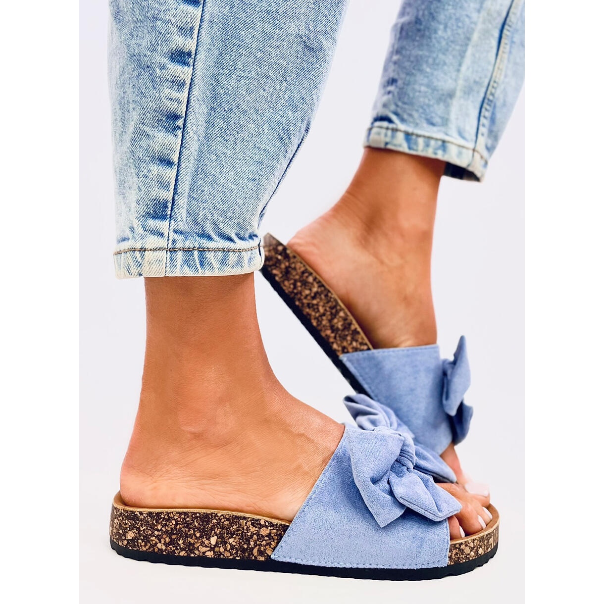 Détails: Keitas Chaussons en liège bleu avec nœud