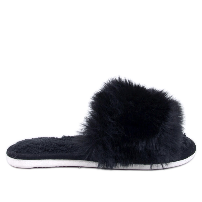 Détails: Kemars pantoufles à bout ouvert en fourrure noire