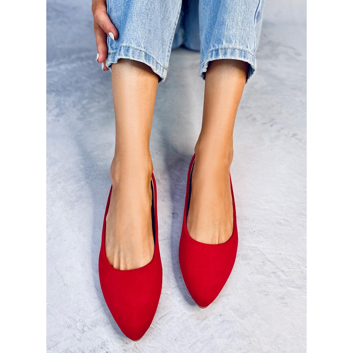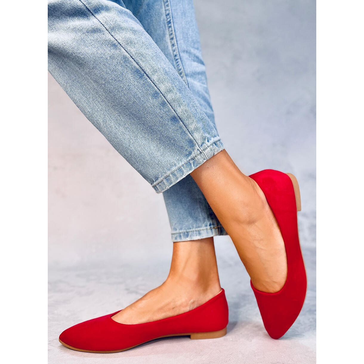Un confort d'utilisation exceptionnel est assuré par l'insert intérieur en cuir, qui garantit le confort à chaque pas, et le talon plat assure la stabilité et permet de bouger librement tout au long de la journée. Les ballerines sont fabriquées en daim écologique, ce qui les rend esthétiques et respectueuses de l'environnement, et leur belle couleur rouge attire le regard et ajoute du caractère à n'importe quel style.