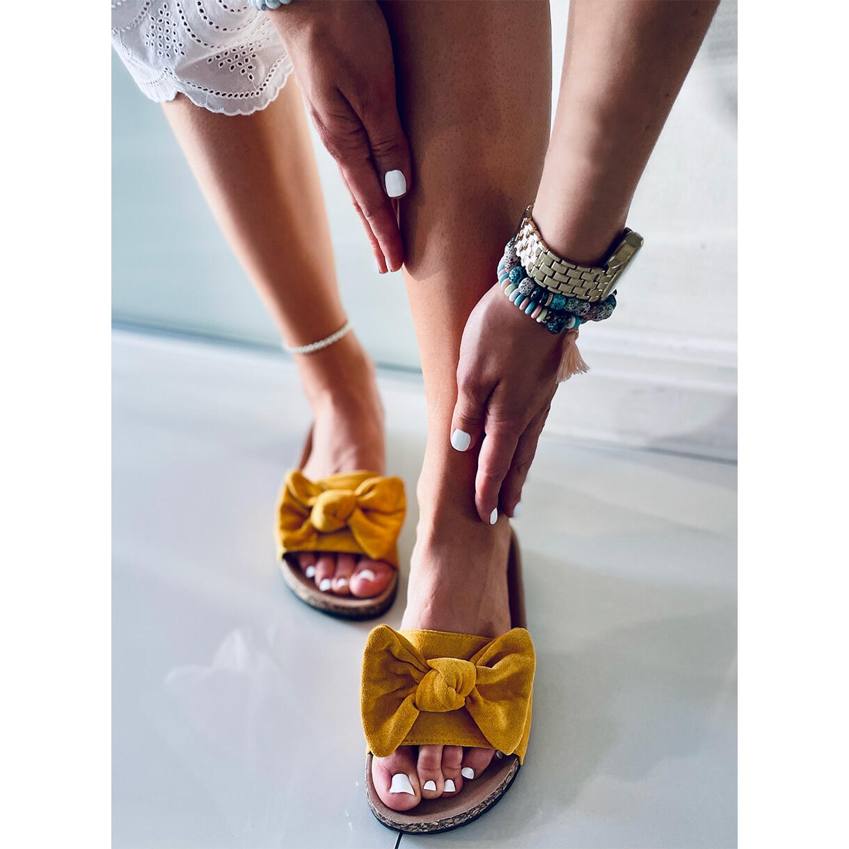 Découvrez le confort et le style estivaux avec les tongs en liège Kiara Yellow ! Ces tongs pour femmes uniques allient élégance et fonctionnalité, ce qui en fait le choix parfait pour les sorties quotidiennes. Un design simple et lisse dans une couleur jaune intense, décoré d'un nœud subtil, ajoutera de la fraîcheur à tout style estival.