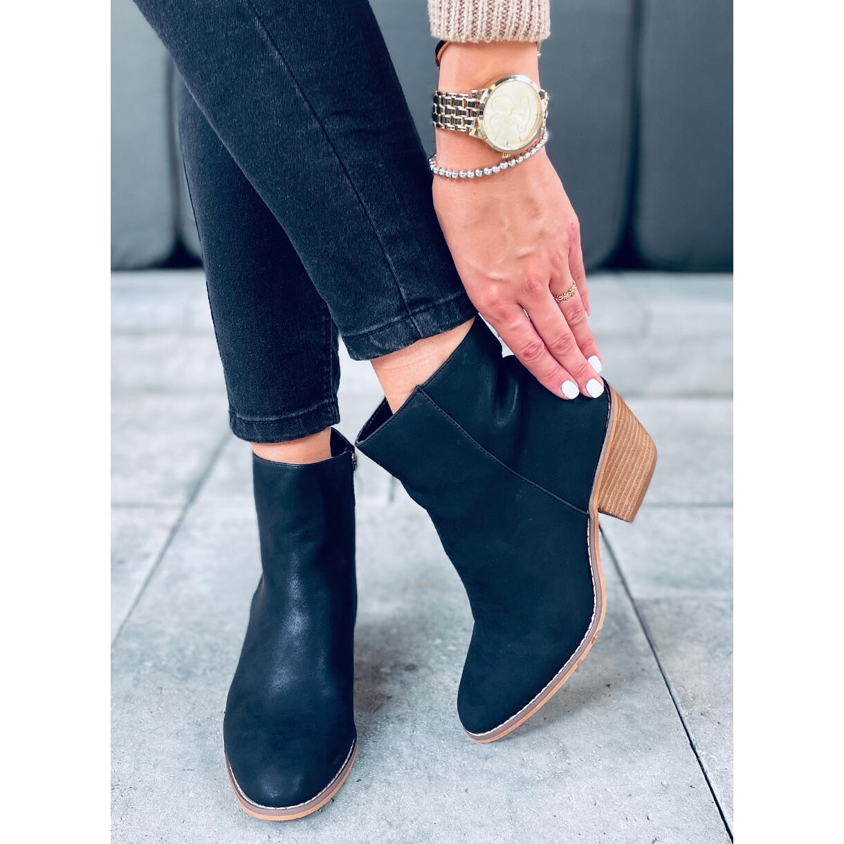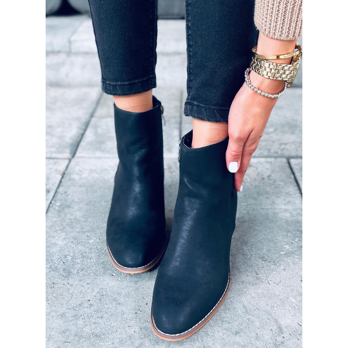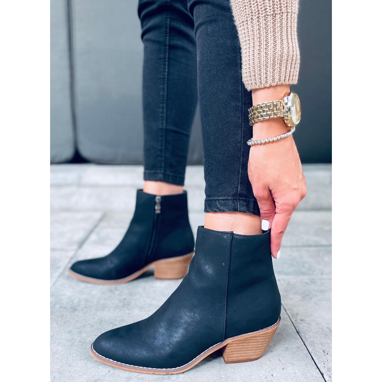 Une fermeture éclair pratique située sur le côté de la tige facilite l'enfilage et le retrait des chaussures, ce qui est particulièrement important au quotidien. Les bottes sont fabriquées en cuir écologique de haute qualité, ce qui garantit non seulement un aspect esthétique, mais également le respect de l'environnement. La finition mate ajoute de l'élégance et le nez d'amande souligne le design moderne.