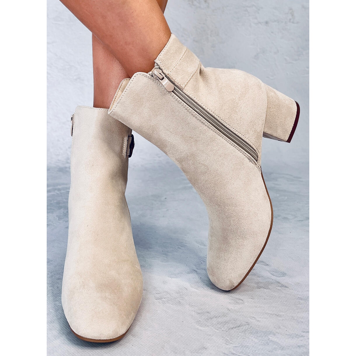 Les bottes en daim beiges pour femmes d'Inna Marka sont une construction maintenue dans un style élégant et quotidien. Leur design classique ravira sûrement de nombreuses femmes. Les bottes sont simples, sans aucun motif supplémentaire. Ce modèle est répertorié sous l'ID fabricant BM177573 et fait partie de la collection KeeShoes.