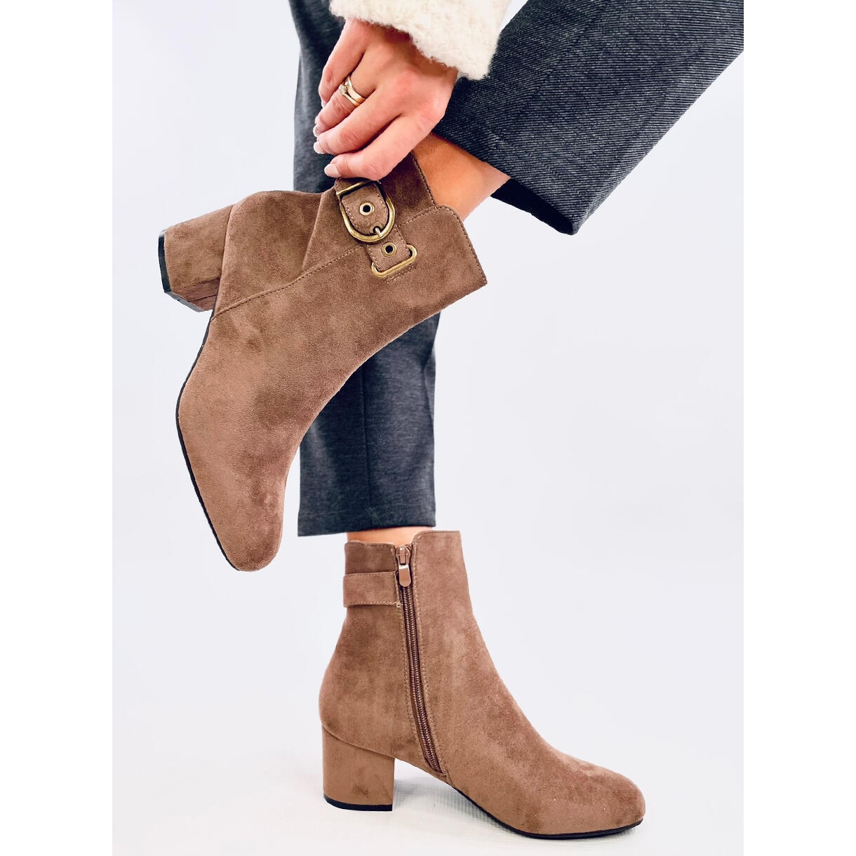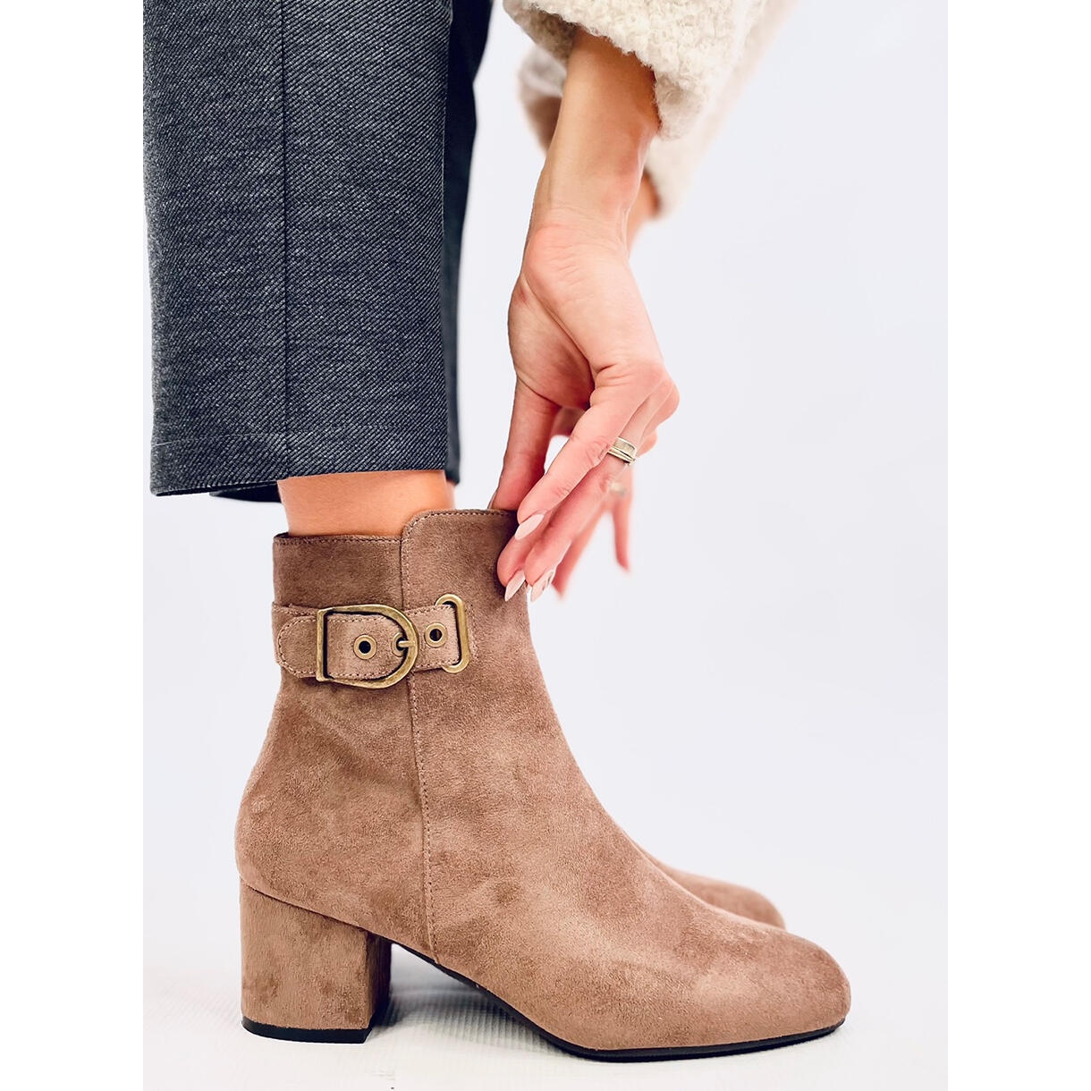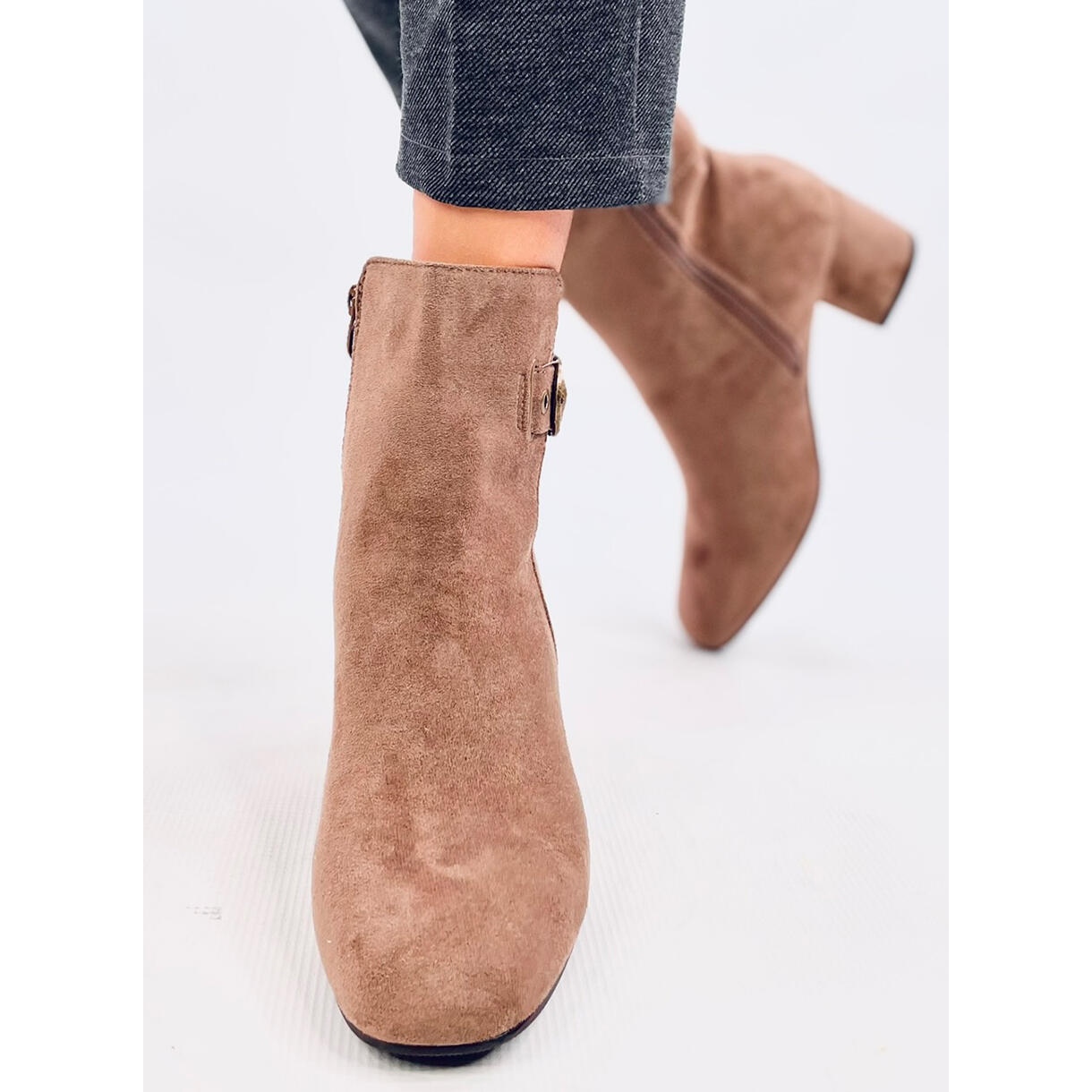 Grâce à la fermeture éclair pratique sur le côté de la tige, enfiler et retirer les bottes devient rapide et sans tracas. Fabriquées en daim écologique, ces bottines sont non seulement élégantes, mais sont également respectueuses de l'environnement. L'isolation interne assure un confort thermique, ce qui les rend parfaits les jours les plus froids.