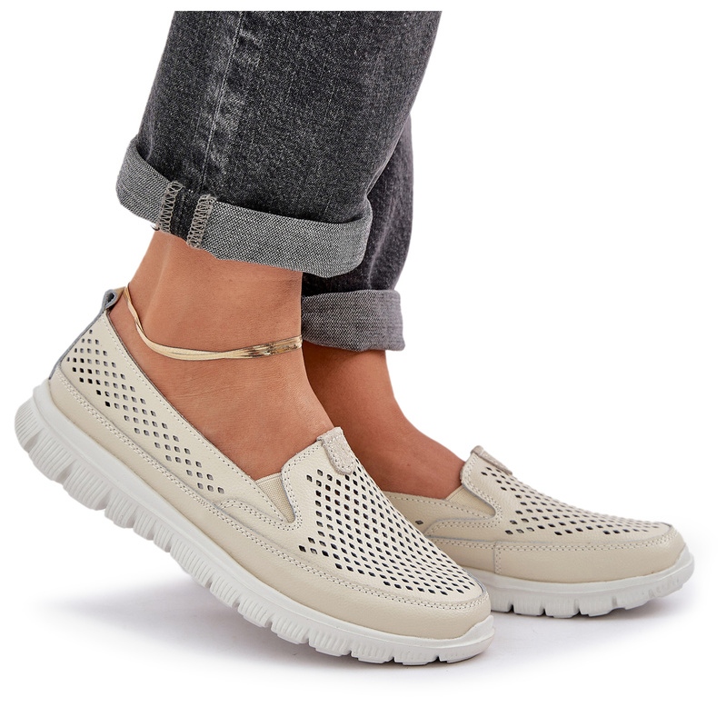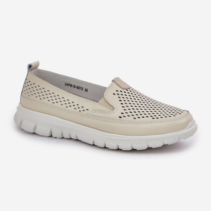 Les mocassins féminins en cuir léger sur la plate-forme beige sont une proposition idéale pour les femmes qui apprécient le style et le confort les jours plus chauds. Ces mocassins uniques sont en cuir naturel, qui offre non seulement un look élégant, mais aussi la durabilité et le confort de l'usure.