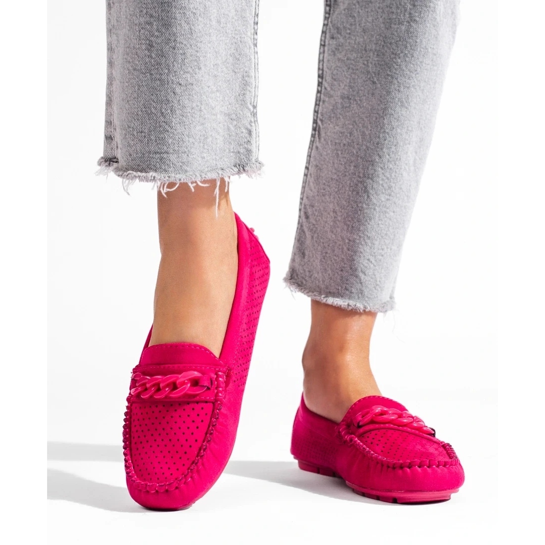 Détails: Le mocassin Shelovet daim ajouré rose pour femme