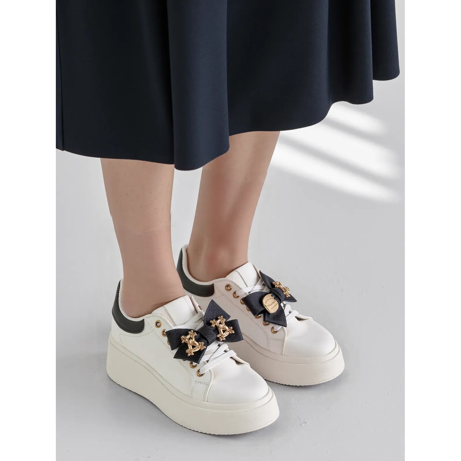 Les baskets pour femmes charment le noir en noir sont une proposition pour les femmes qui apprécient chaque jour la combinaison de l'élégance avec le réconfort. Ces chaussures uniques se distinguent par des couleurs blanches et des détails décoratifs, comme un arc spectaculaire et des accents dorés subtils qui leur donnent l'originalité. Fabriqués en cuir écologique de haute qualité, ils assurent la commodité et la durabilité des longues heures d'utilisation.