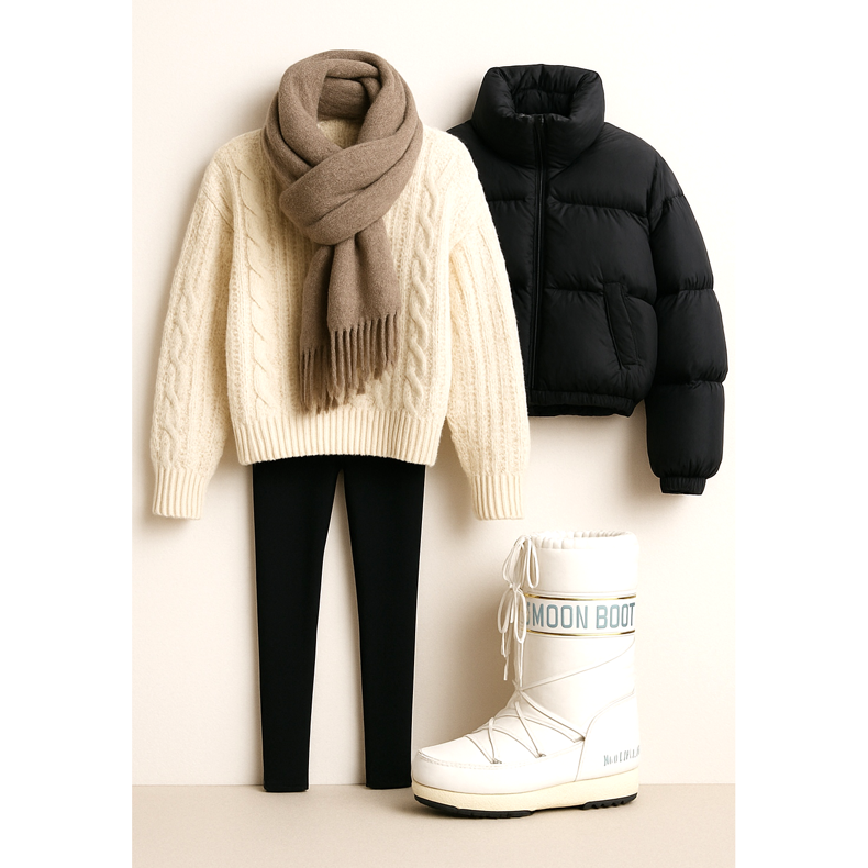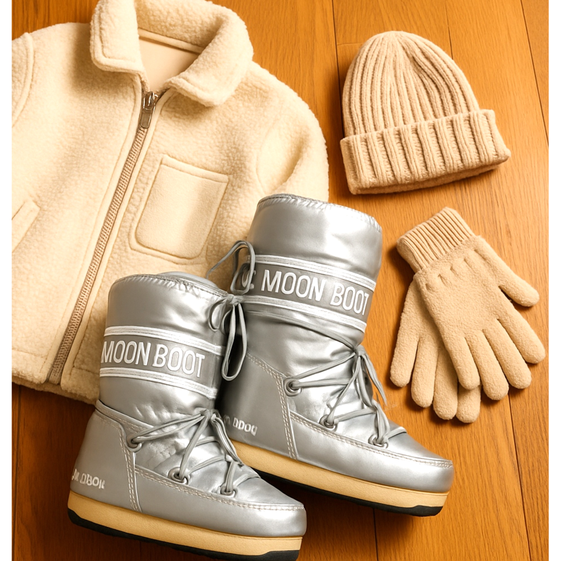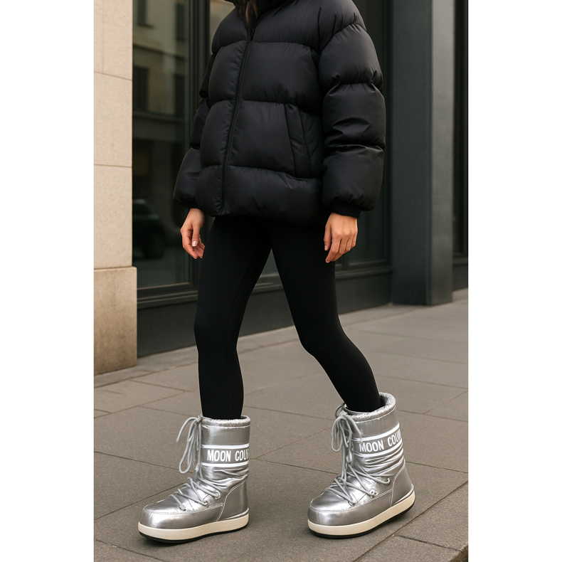 L'emblématique Moon Boot, inspirée des bottes d'astronaute, est une icône qui revient chaque hiver. En 2026, non seulement les modèles classiques et hauts sont à la mode, mais aussi les versions courtes (bas) et celles aux couleurs métallisées - argent, or et rose métallisé. Ce sont des chaussures qui « font » tout le style. Portez-les simplement avec des leggings simples et une doudoune oversize pour ressembler à une grande fashionista d'Instagram.
