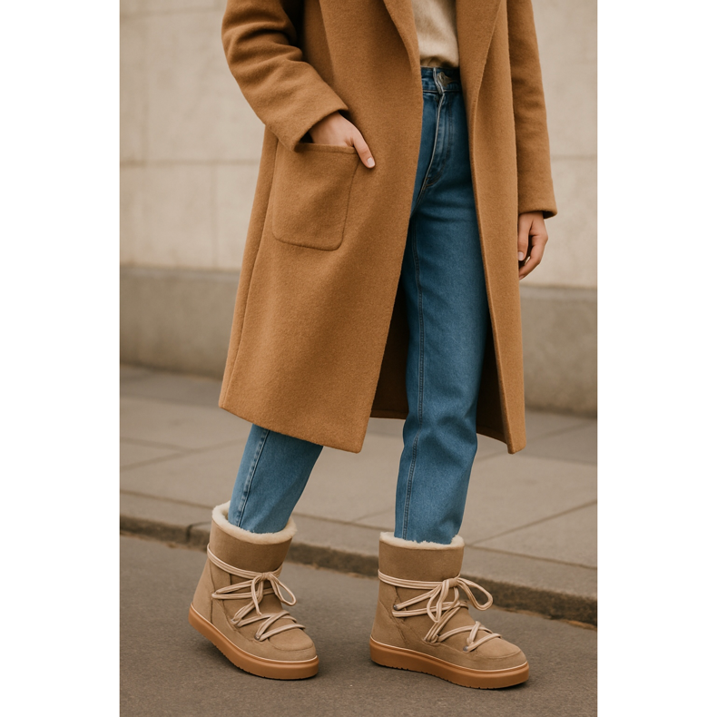 Pour les adeptes du style bohème et des matières naturelles, les bottes de neige comme les Inuikii ou les UGG seront parfaites. Confectionnés en peau de mouton, noués par des lacets épais, ils s'associent parfaitement aux manteaux en laine et aux jeans mom fit. Cette saison, les modèles dans les tons beige, caramel et chocolat dominent. Ils sont incroyablement chauds et confortables : c'est comme marcher sur un nuage, même lorsqu'il fait un froid glacial dehors.