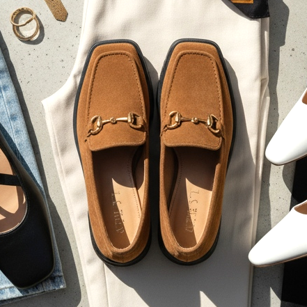 Les mocassins à bout carré sont parfaits pour accompagner des pantalons larges élégants, des jeans taille haute ou des robes à col chemise. Cette combinaison montre du style avec une légère pointe d'androgynie - forte, décisive et très tendance en 2026.