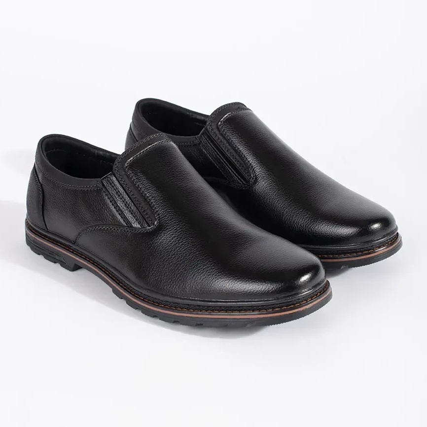 Ces chaussures classiques fonctionneront dans de nombreuses situations, des tâches quotidiennes aux sorties plus formelles. Leur couleur noire universelle s'inscrit parfaitement dans le style décontracté, ce qui en fait un élément idéal de chaque garde-robe masculine. La semelle en plastique avec une bande de roulement garantit une bonne adhérence, ce qui vous permet de les porter dans diverses conditions météorologiques.
