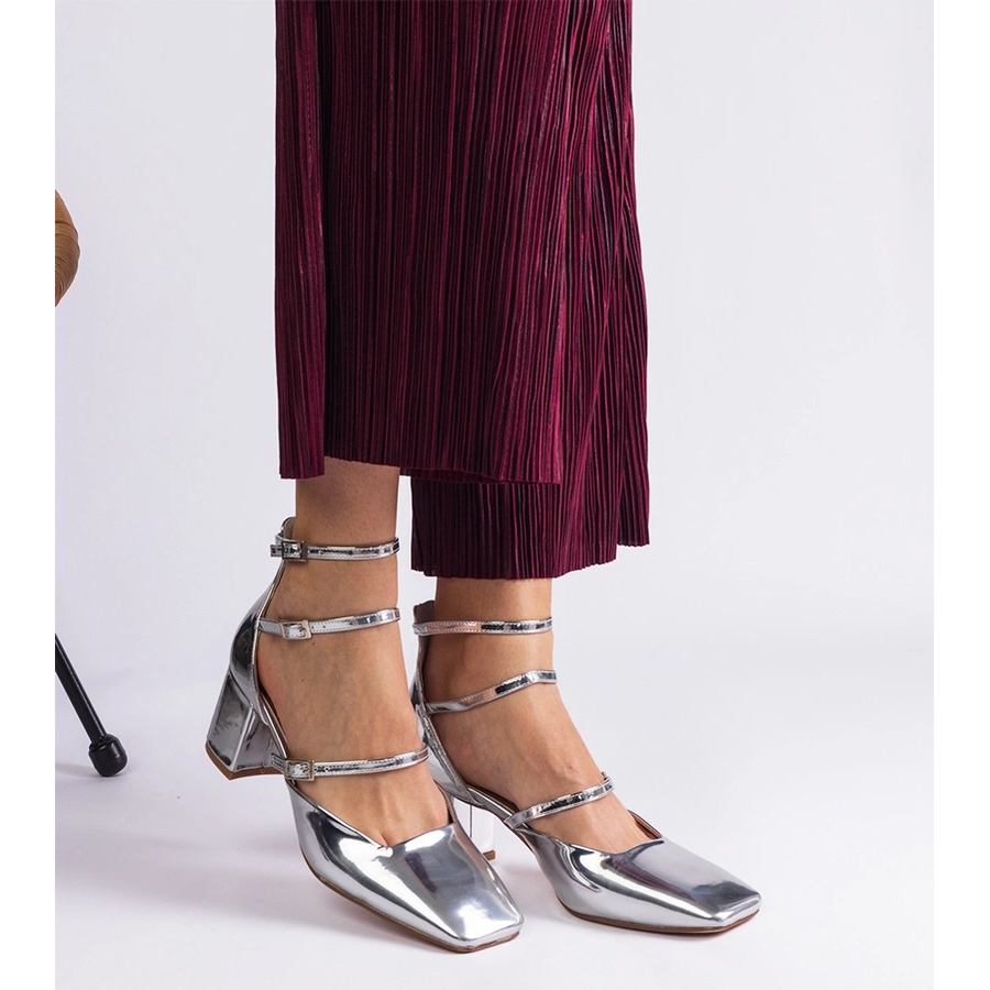 Découvrez une lueur inhabituelle avec des pompes en argent verni sur un poteau, ce qui constitue un complément parfait à toute stylisation. Le modèle G10059 dans une belle nuance d'argent est fait de cuir écologique de haute qualité, qui garantit non seulement une apparence efficace, mais aussi le confort du port. Grâce à la finition métallique, ces chaussures élégantes attirent l'attention et ajoutent un caractère unique aux tenues quotidiennes et plus formelles.