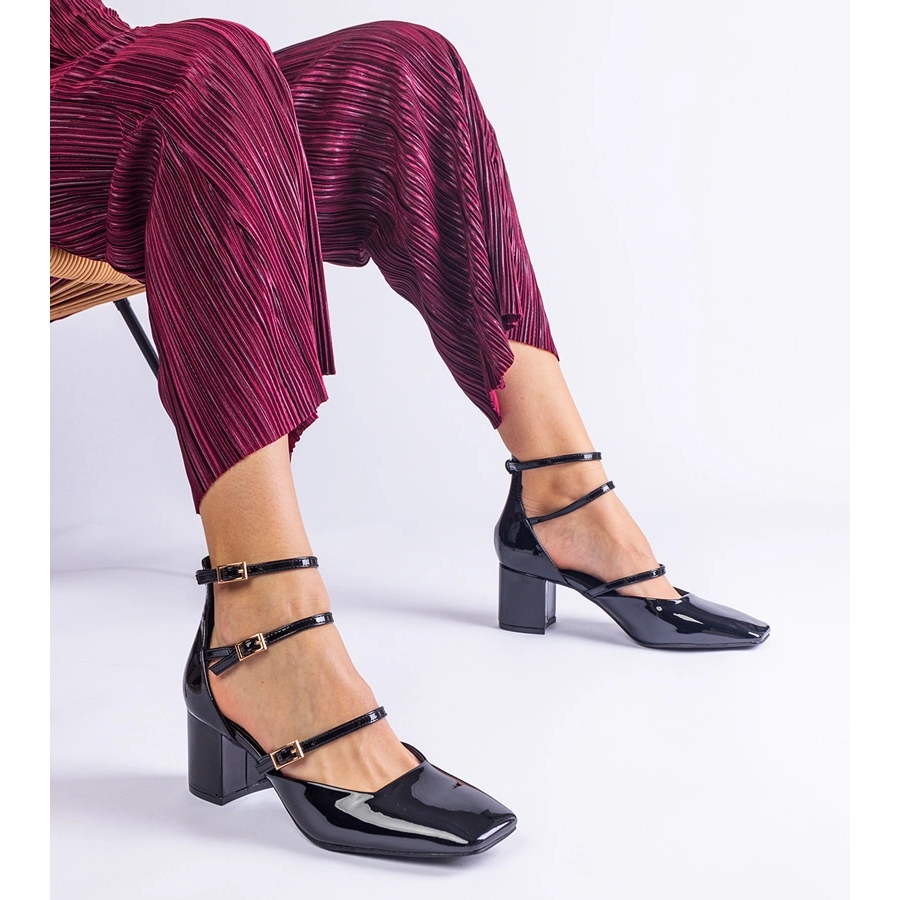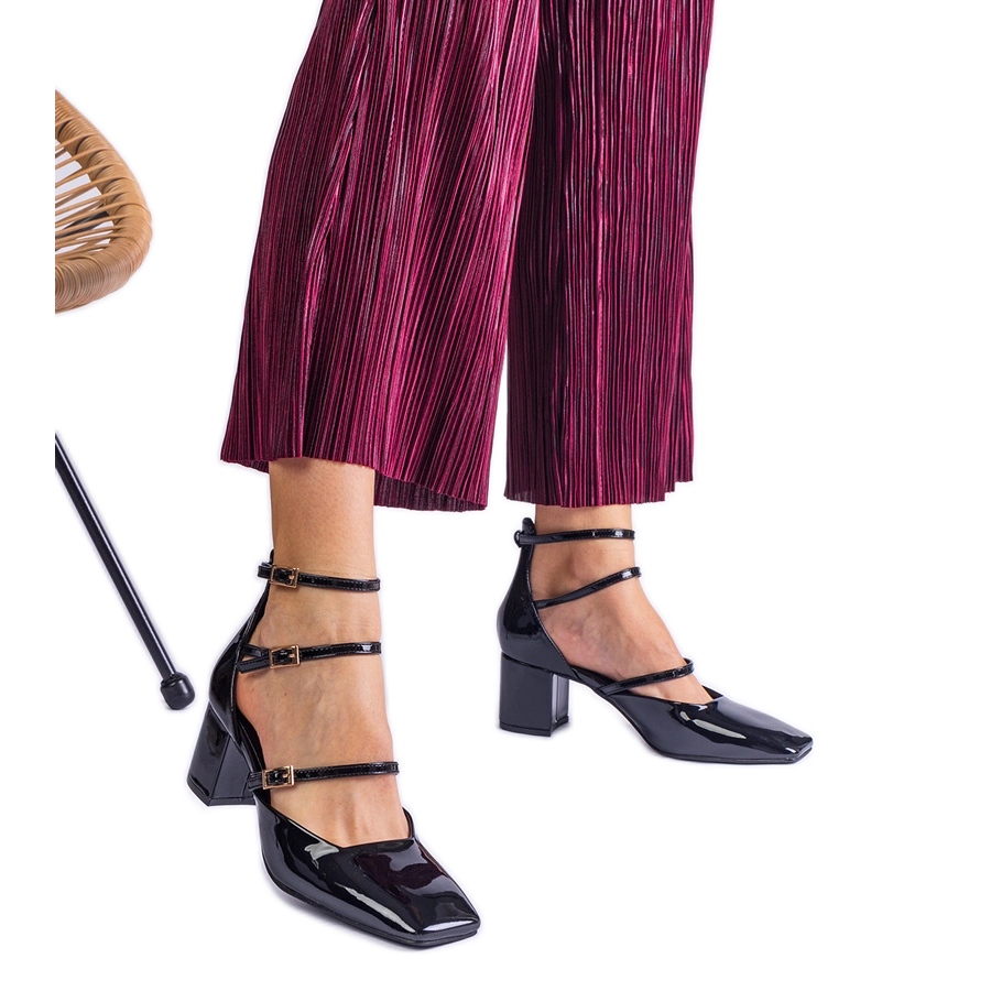 Inna marka Les pompes noires ont été vernies sur un poteau avec des boucles le noir