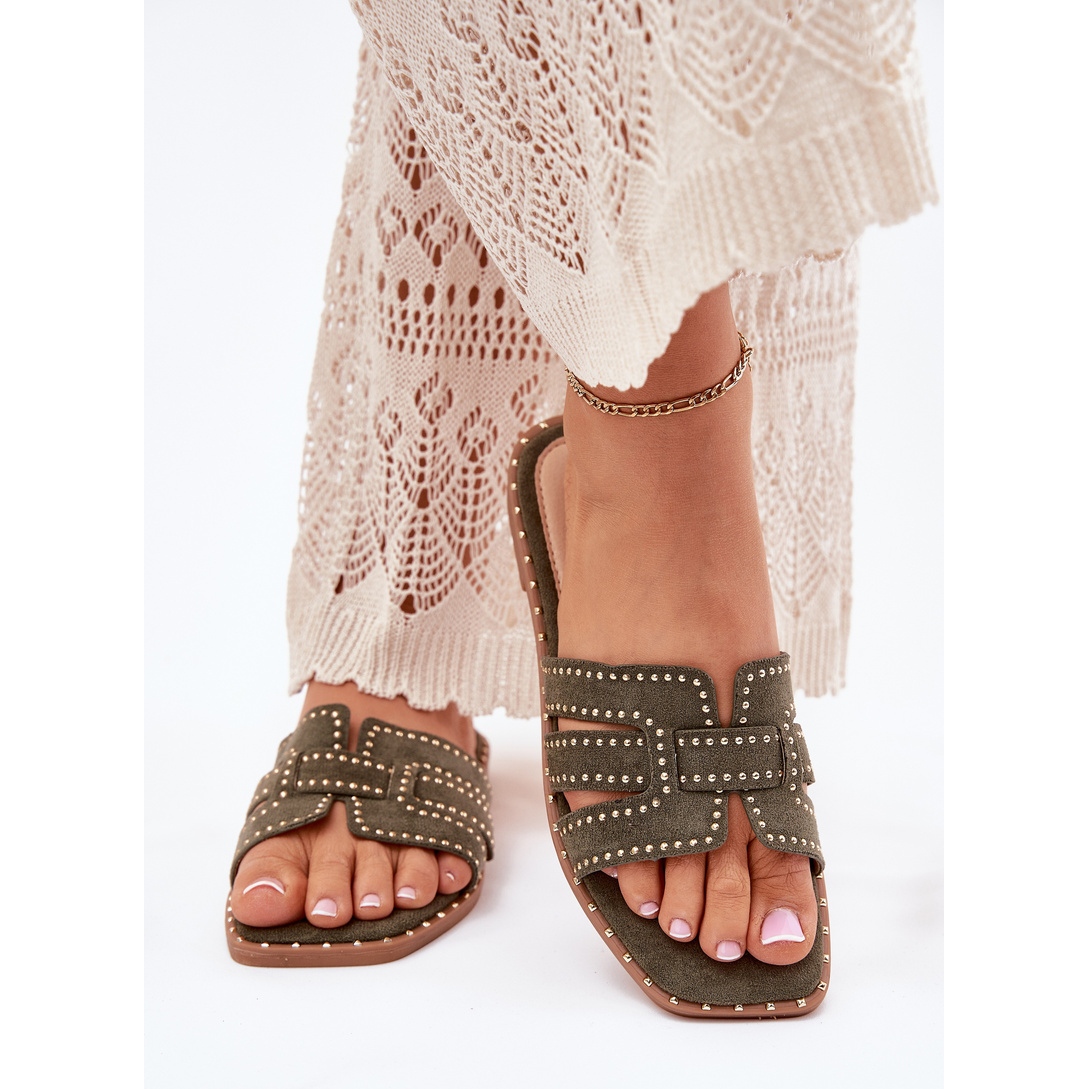 Ces tongs sont placés sur une thèse plate d'une hauteur de 1,5 cm, ce qui garantit le confort pendant les longues journées. La coupe coulissante facilite la mise en place, ce qui en fait le choix parfait pour les promenades d'été ou la détente dans le jardin. L'ombre de la verdure militaire s'inscrit parfaitement dans les tendances actuelles, et le seul beige complète harmonieusement l'ensemble.