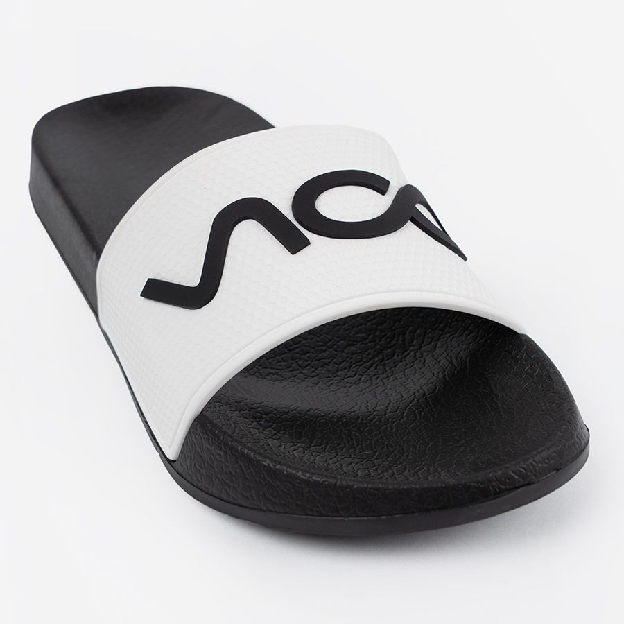 Parfait tous les jours, les tongs Shelvt sont non seulement pratiques, mais aussi à la mode. La couleur blanche et blanche et une inscription minimaliste leur donnent du caractère et leur font correspondre de nombreux styles décontractés à plus élégants. L'insert en cuir écologique offre un réconfort pendant une journée, et une semelle en plastique solide garantit la durabilité.