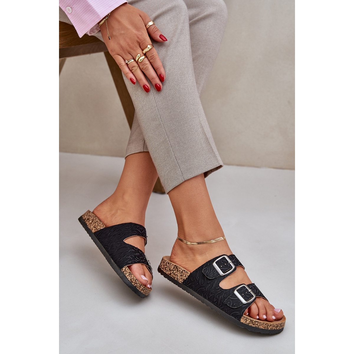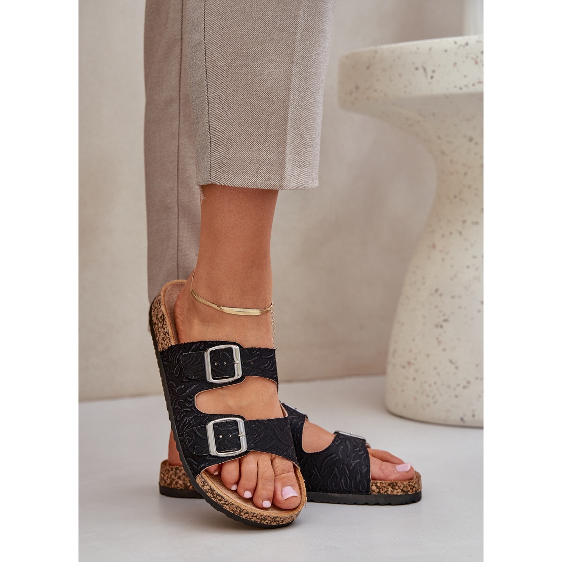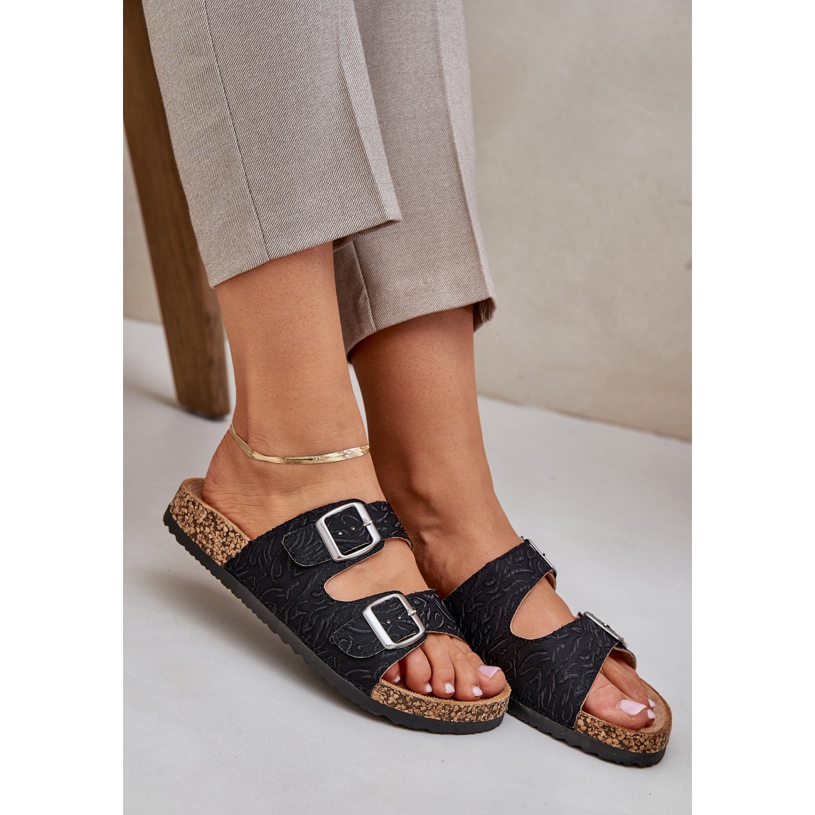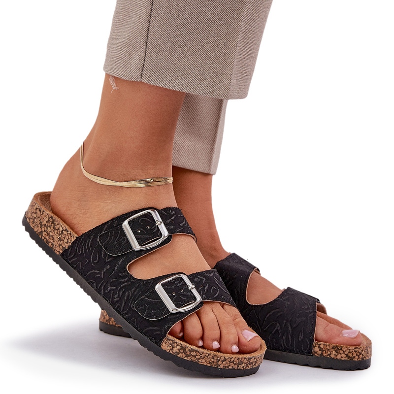 Deux rayures avec boucles vous permettent de correspondre facilement à différentes formes de pieds, garantissant la stabilité et la commodité dans chaque situation. La semelle en liège ajoute non seulement la légèreté, mais aussi un personnage à la mode, ce qui en fait un élément unique d'une garde-robe d'été. L'insert profilé en cuir en daim écologique garantit un excellent amorti, ce qui permet de porter confortable toute la journée.