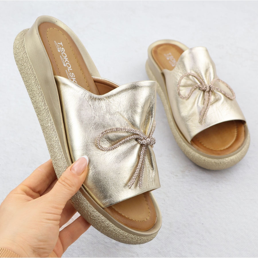 Détails: Les tongs de tongs en cuir féminin T.Sokolski L25-154 d'or