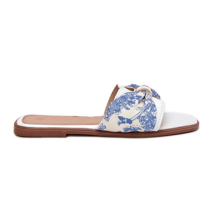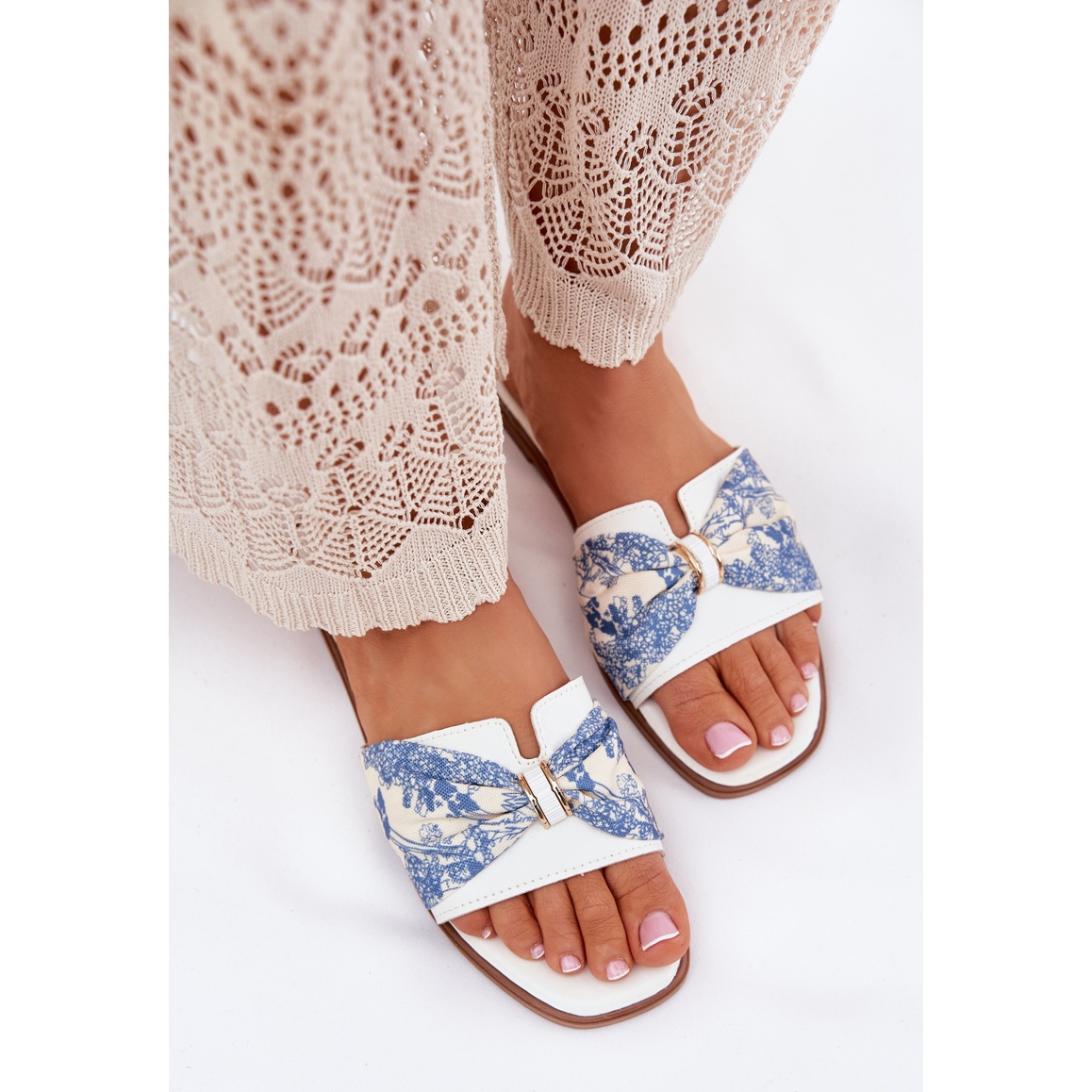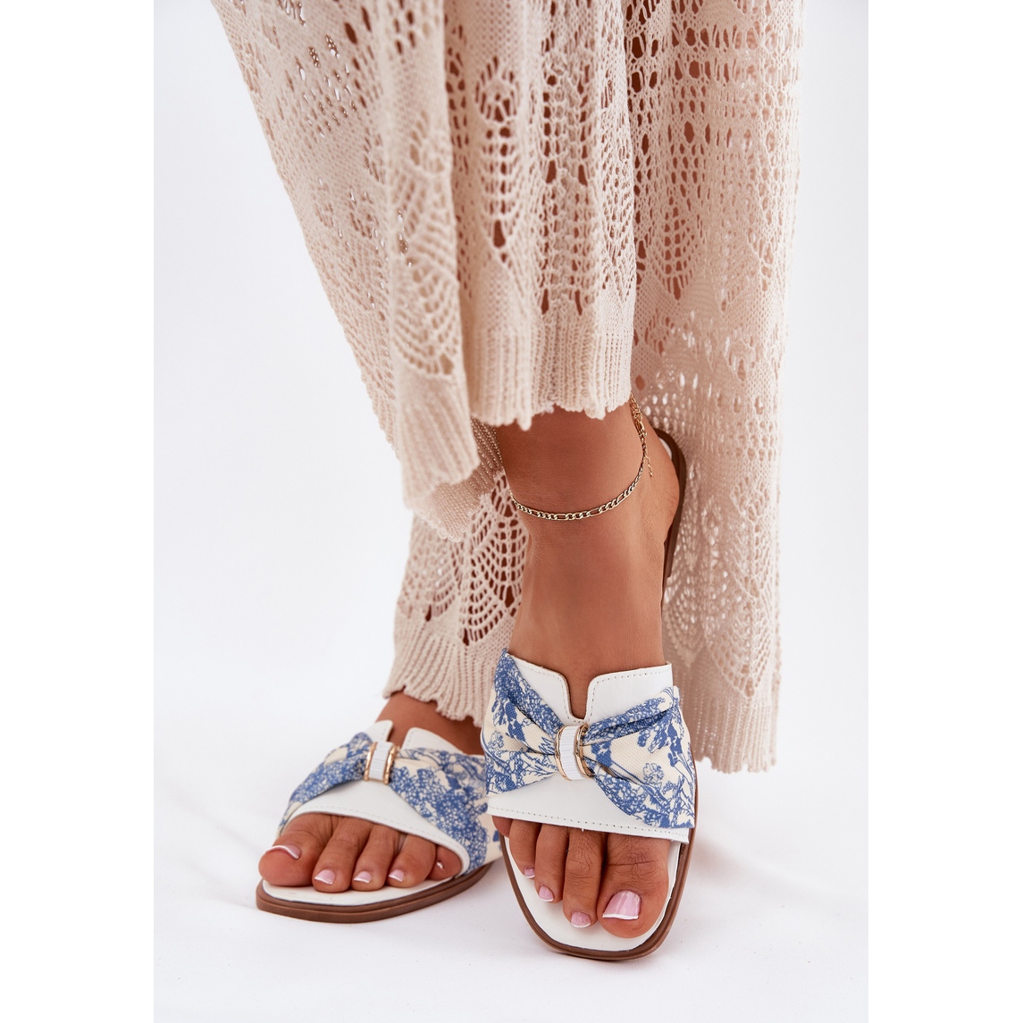Détails: Les tongs des femmes à thèmes plates avec un arc blanc blanche