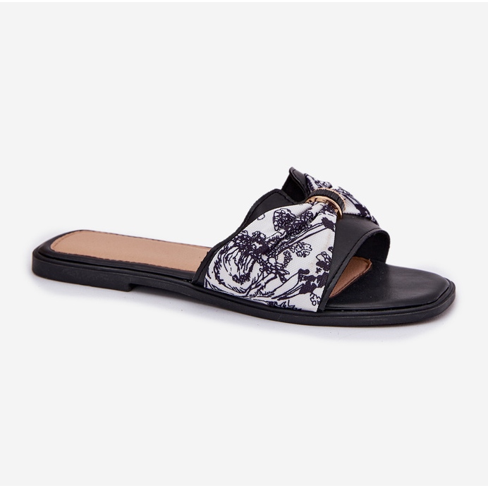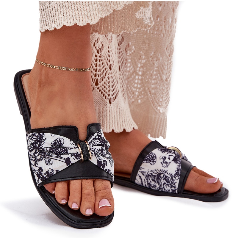 Détails: Les tongs des femmes à thèmes plates avec un arc noir le noir