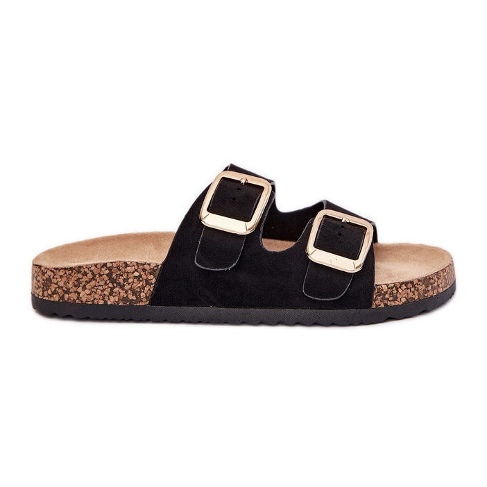 Les tongs des femmes avec des boucles d'or eco en daim noir