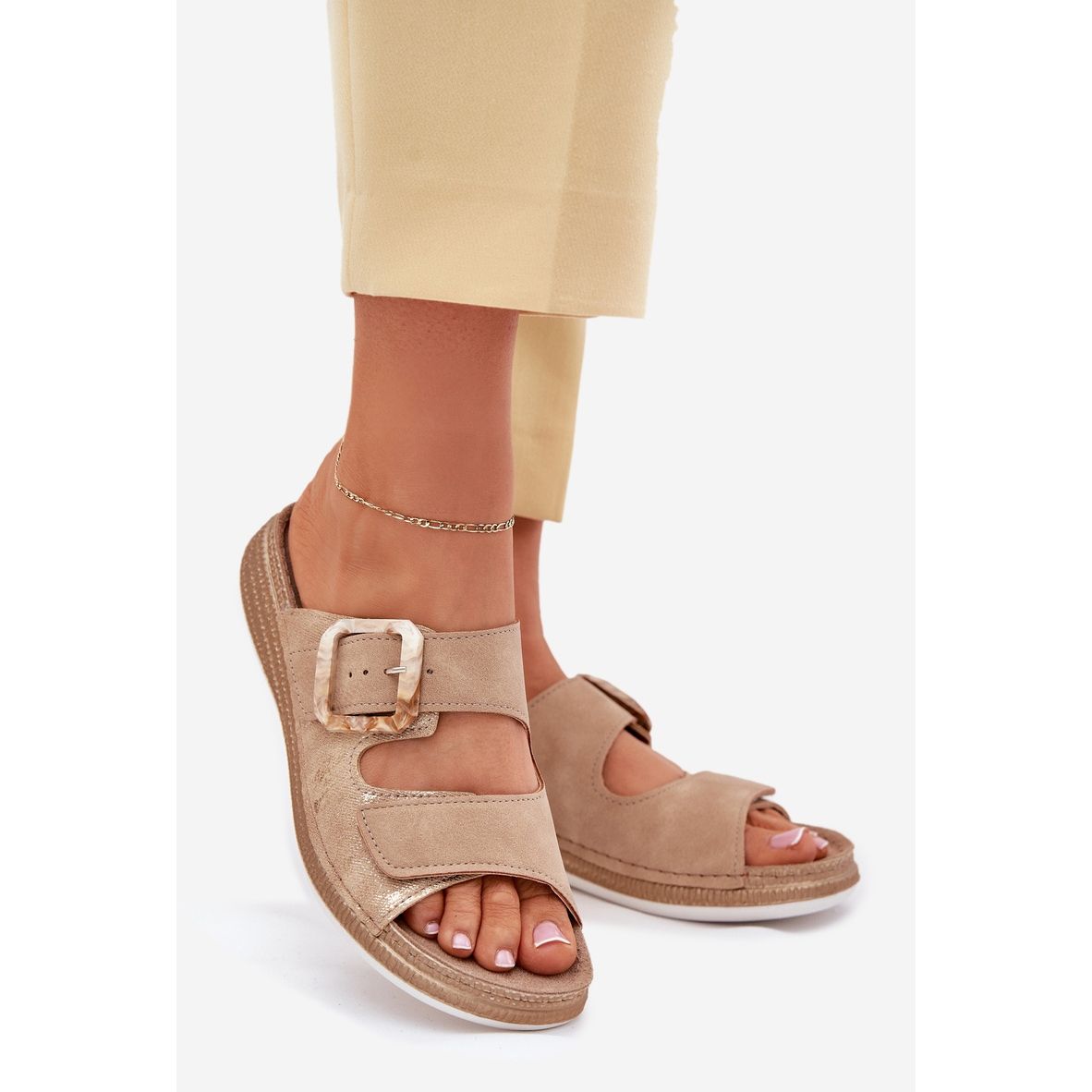 Détails: Les tongs des femmes avec une boucle et un velcro inblu MK000013 beige