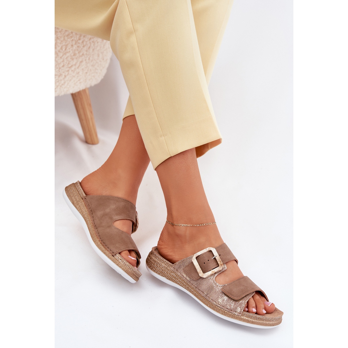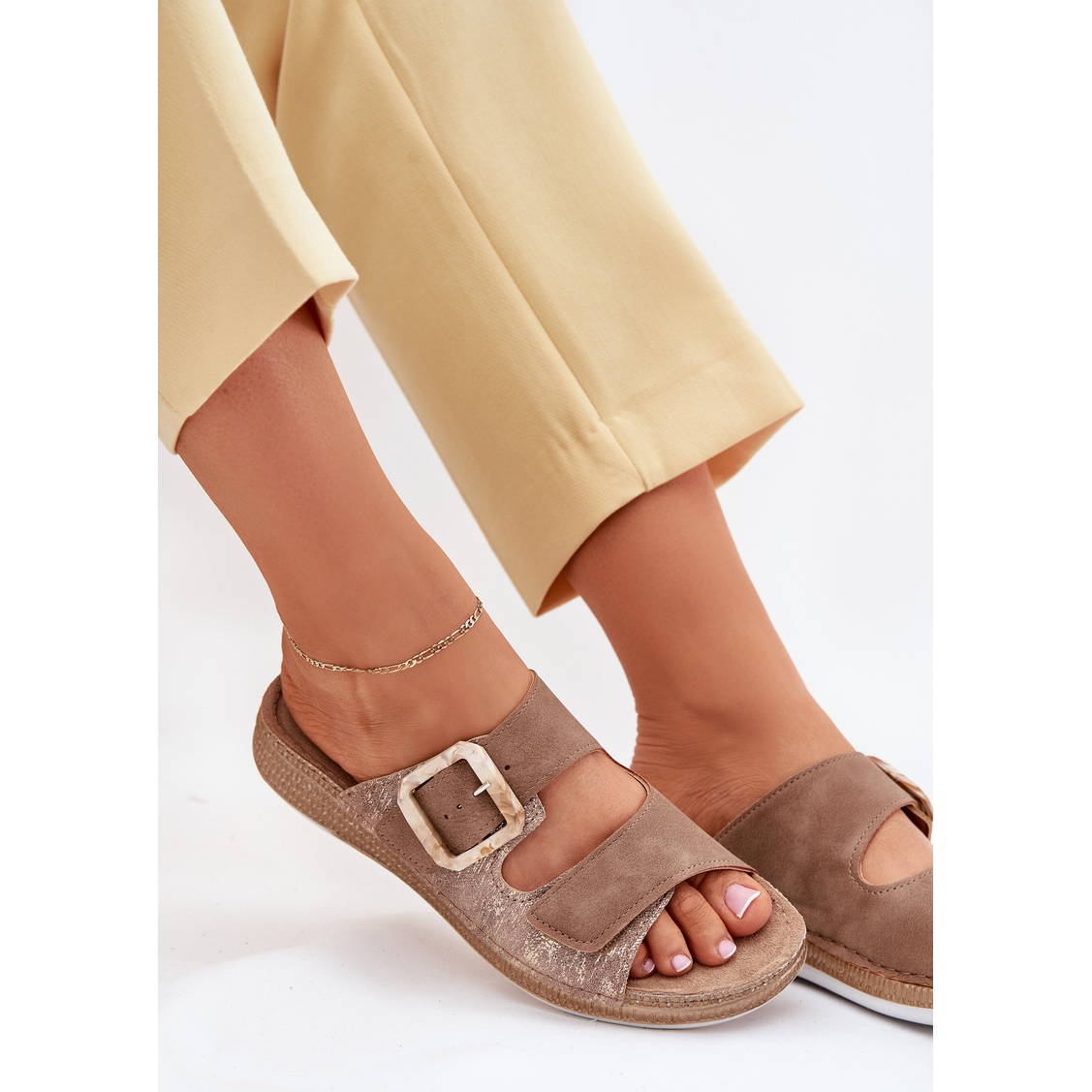 Inblu Les tongs des femmes avec une boucle et un velcro inblu mk000013 brun