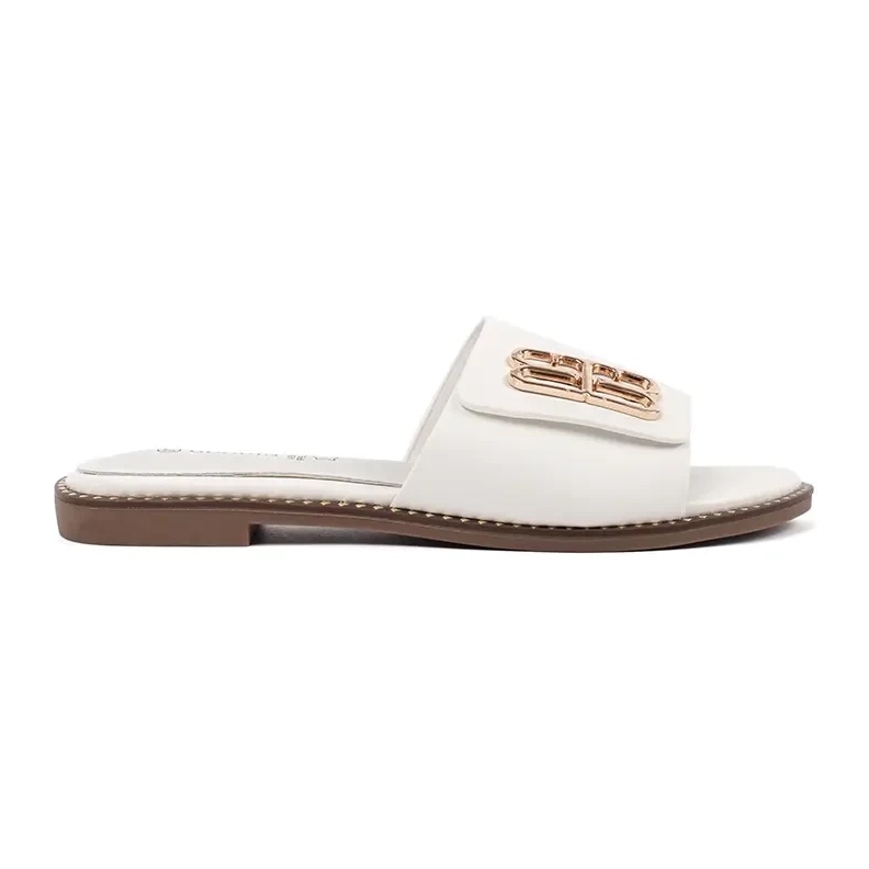 Goodin Goodin Les tongs des femmes blanches avec une semelle plate avec un ornement
