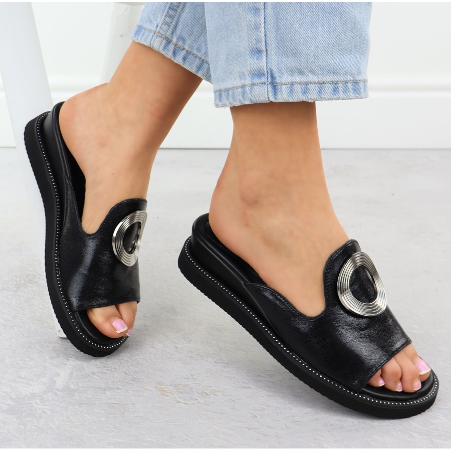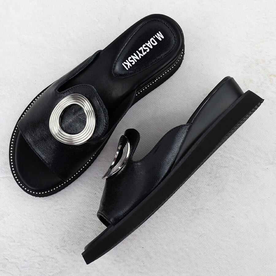 Les pantoufles pour femmes en noir de cale bas de M. Daszyński sont le choix parfait pour toutes les femmes qui apprécient une combinaison de style de mode et de confort. Fabriquées en cuir écologique de haute qualité, ces tongs s'adapteront parfaitement au pied, garantissant le confort pendant les activités quotidiennes.