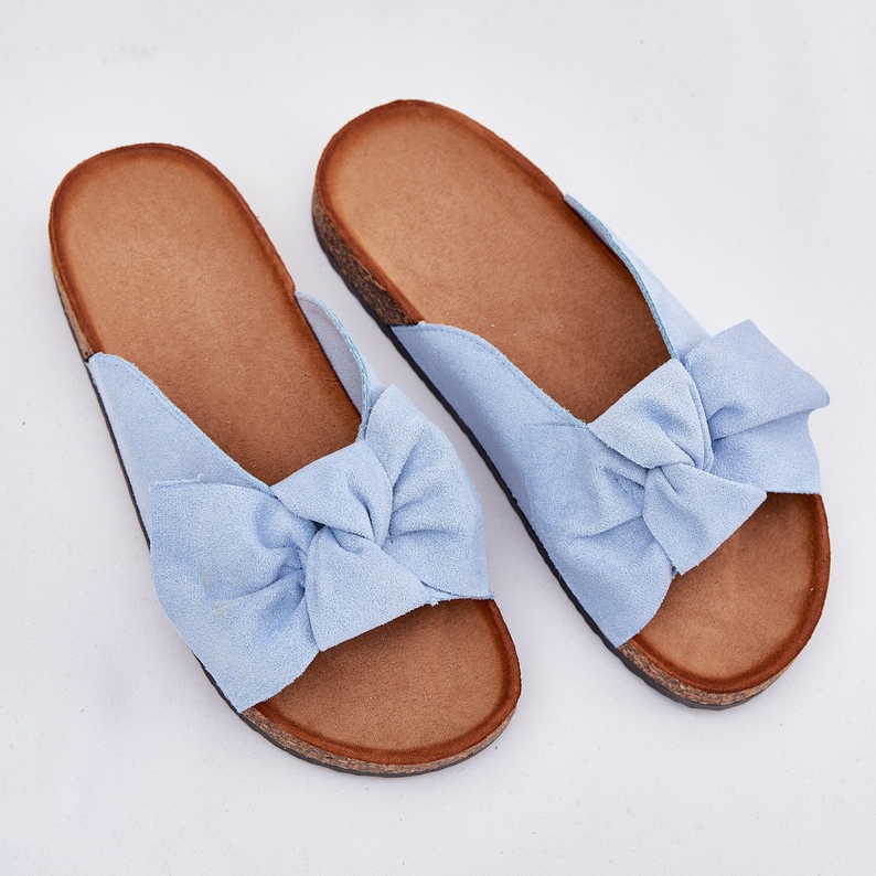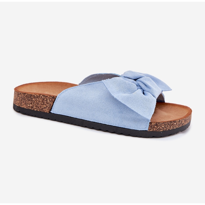 Les tongs pour femmes sur une semelle de liège avec un arc bleu sont le choix parfait pour les jours d'été et chauds. Fabriqué en daim eco, ils offrent du confort et du style en un. Un insert confortable et profilé garantit le confort toute la journée, ce qui en fait un excellent ajout aux stylisations de tous les jours.