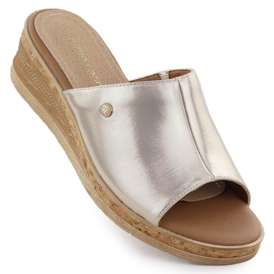 Les flip-flip pour femmes avec un coin d'or de la célèbre marque Sergio Leone sont le choix parfait pour les femmes qui veulent combiner l'élégance avec le style quotidien. Le modèle KL-191 se distingue non seulement par une couleur à la mode et métallique, mais aussi par une performance exclusive du cuir écologique de la plus haute qualité. Grâce à la tige, qui reflète magnifiquement la lumière, ces tongs complètent parfaitement chaque stylisation, ce qui lui donne du brillance et du style.