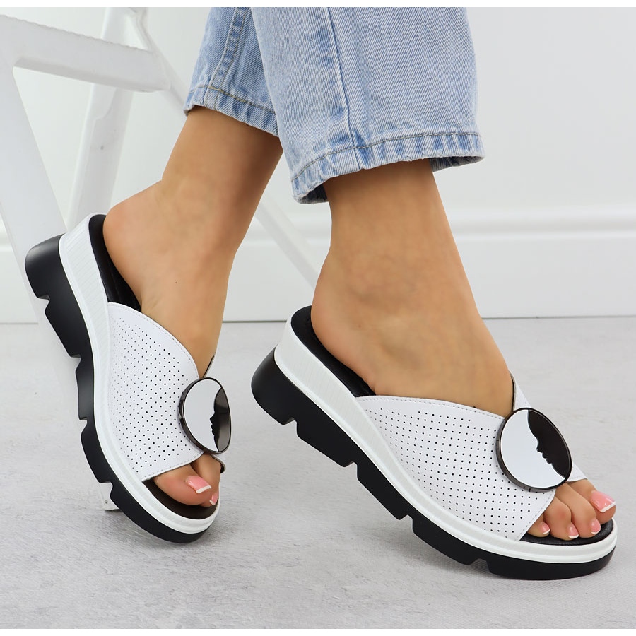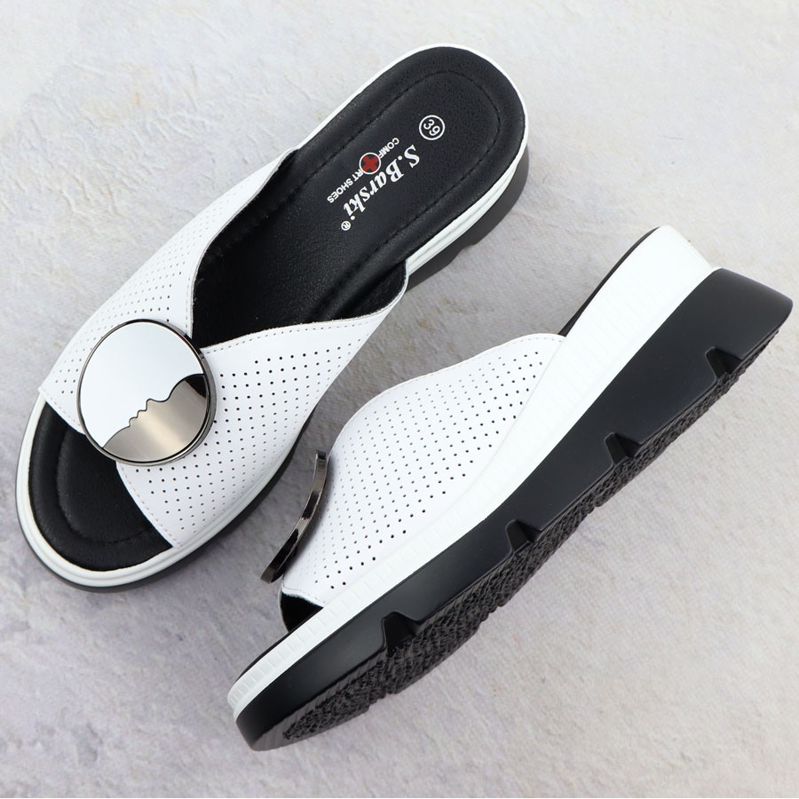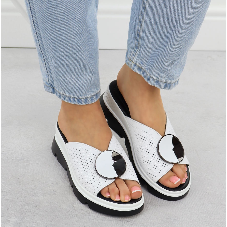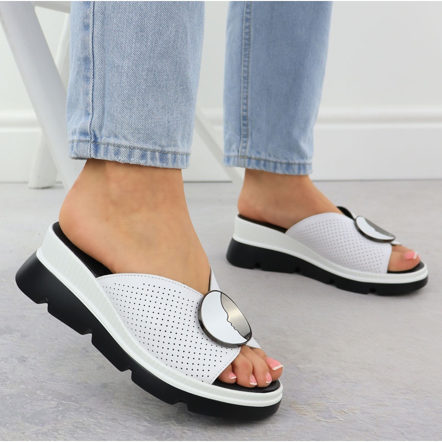 Détails: S.Barski Les tongs en cuir des femmes Openwork Białe S. Barski LR51-662 blanche