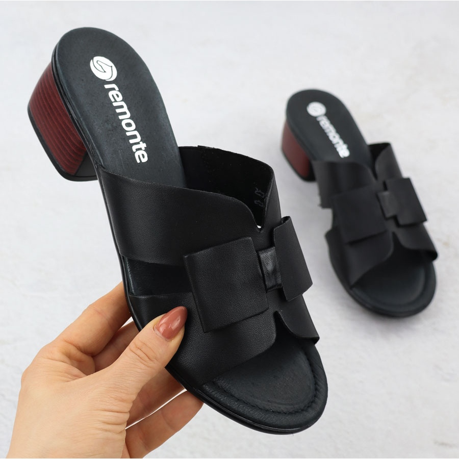 Détails: Remonte Les tongs en cuir féminin sur le bloc noir Rémonte R8759-01 le noir