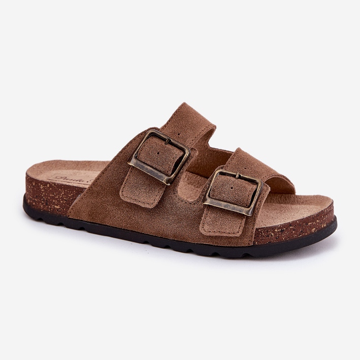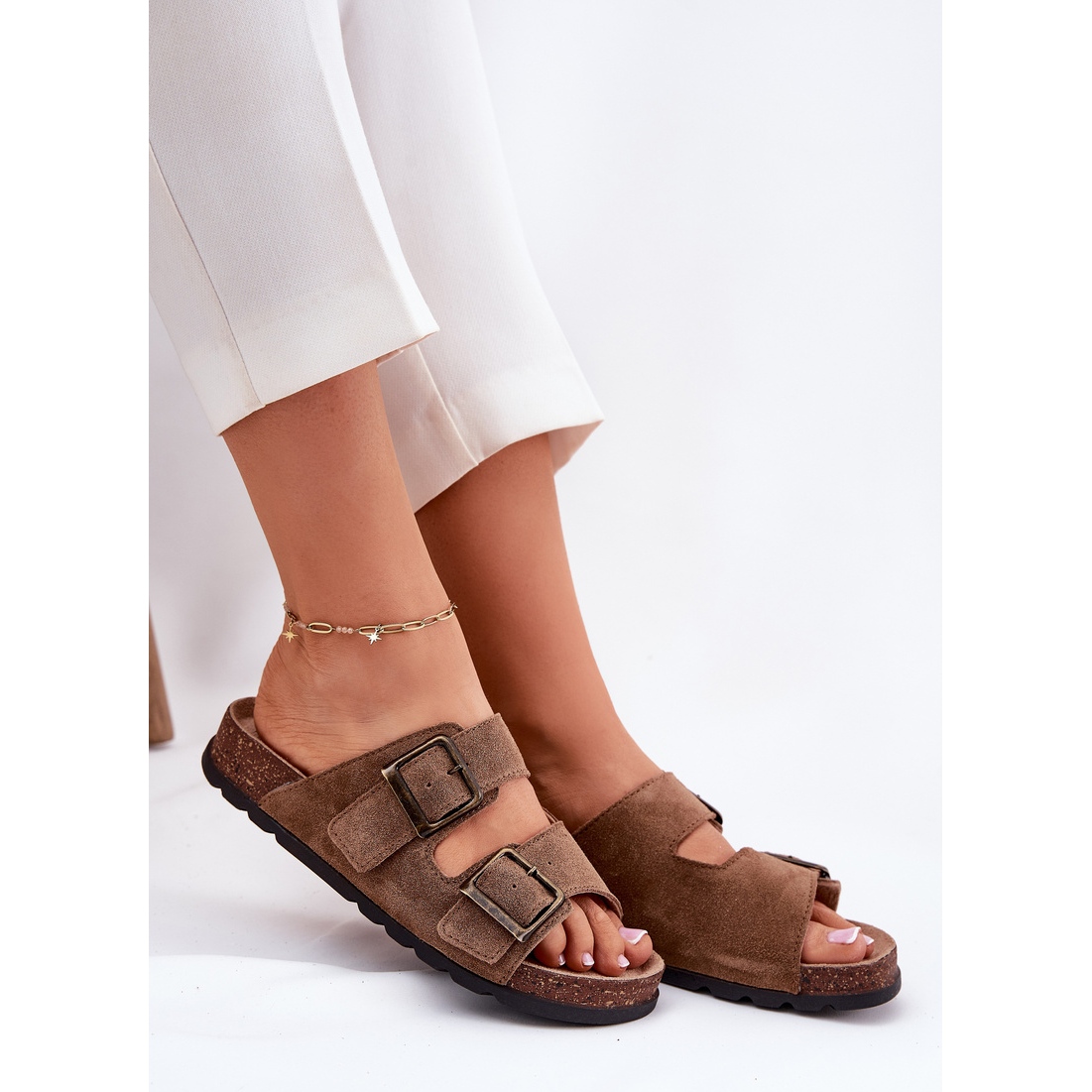 Détails: Les tongs en daim avec la boucle féminine Panto Fino RR267024 brun