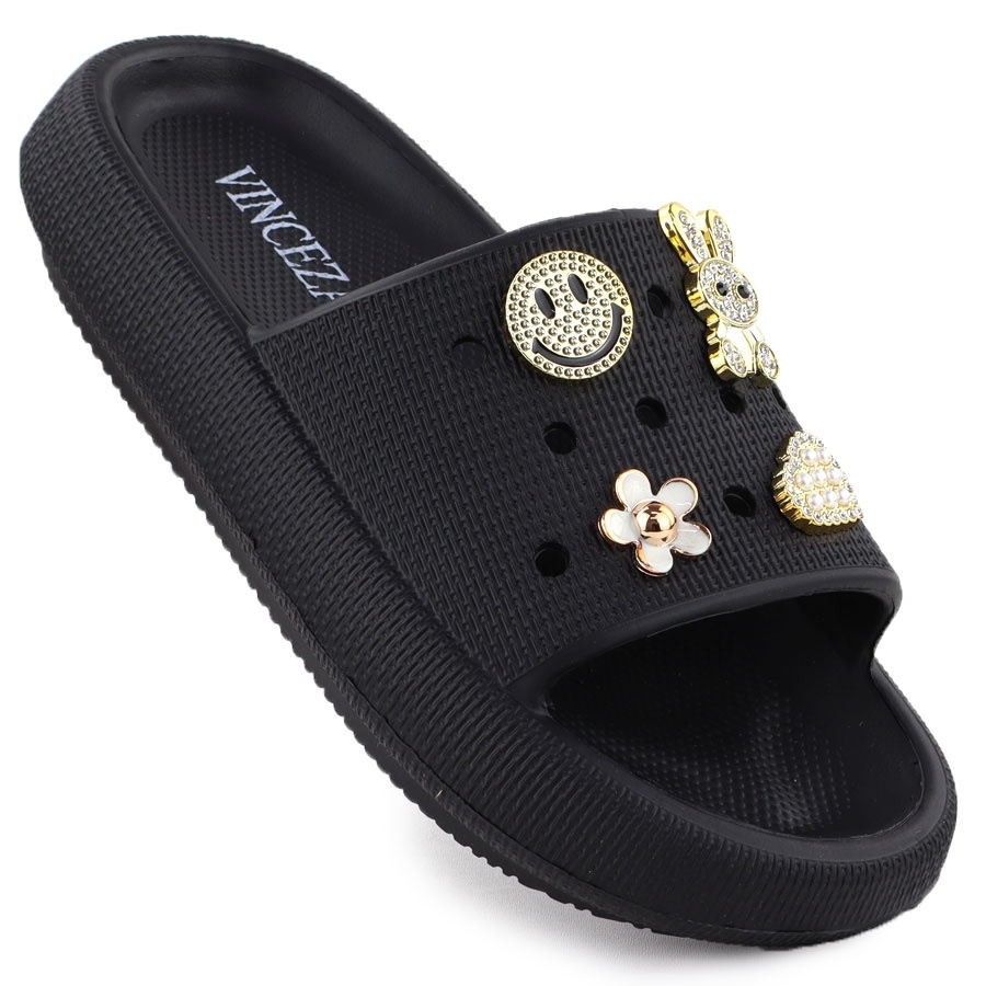 Vinceza Les tongs en mousse pour la plage de piscine sur la plate-forme noire avec des décorations Vincez 76055