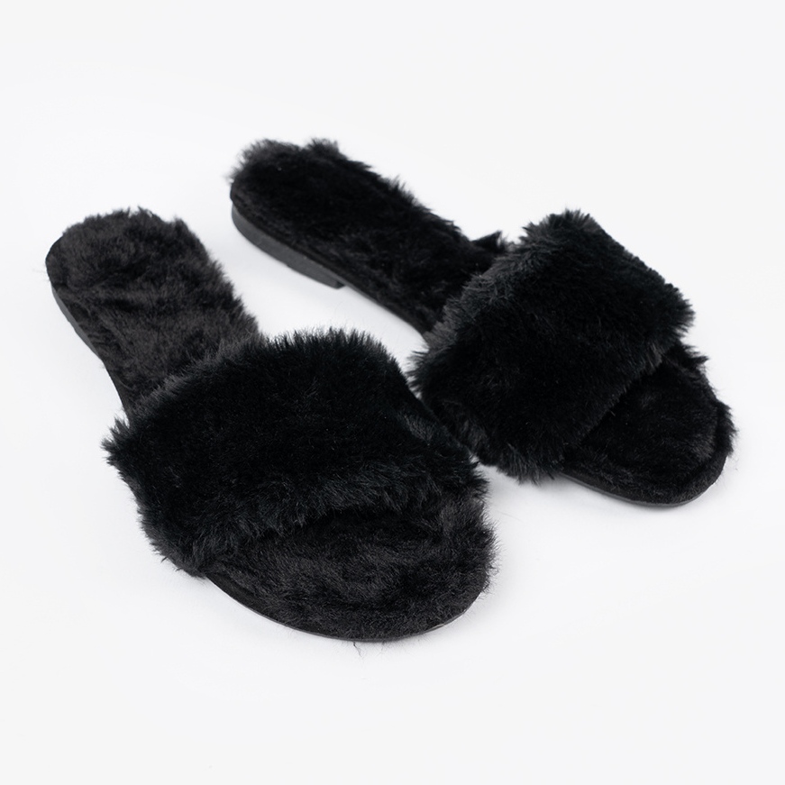 Seastar Seastar Les tongs noirs avec une fourrure douce le noir