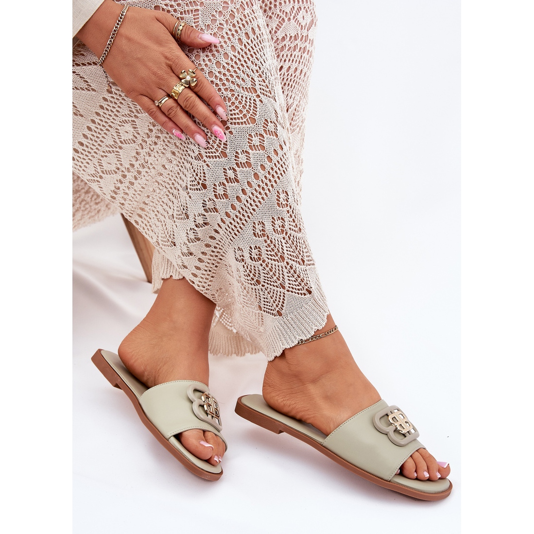 La principale caractéristique qui distingue ces tongs est un détail décoratif subtil placé sur une ceinture qui leur donne un caractère à la mode et élégant. Grâce à l'insert en cuir Eco Soft, vous pouvez profiter du confort toute la journée, quelle que soit l'occasion. Les tongs se mélangent parfaitement avec des robes légères et des pantalons de matériaux, ce qui en fait un élément universel des vêtements.