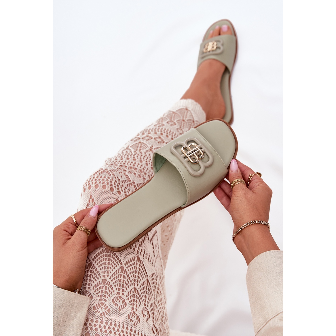Inna marka Les tongs plats des femmes avec un détail vert décoratif
